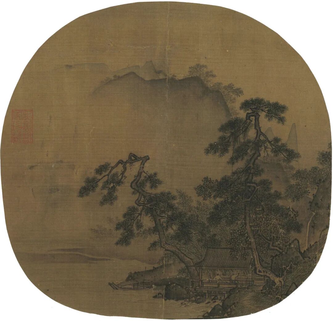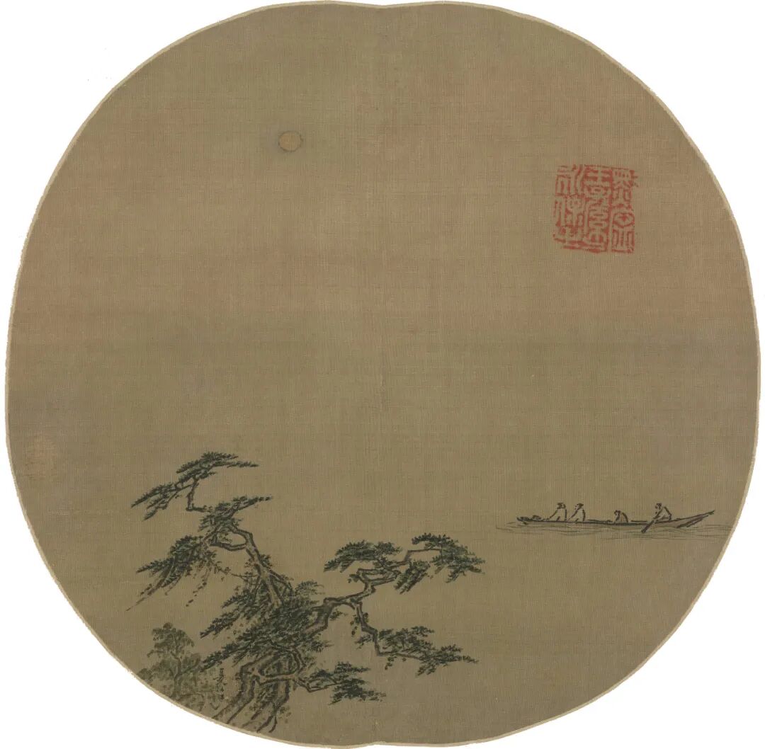 《松溪泛月图》 绢本 墨笔 | 24.7×25.2cm