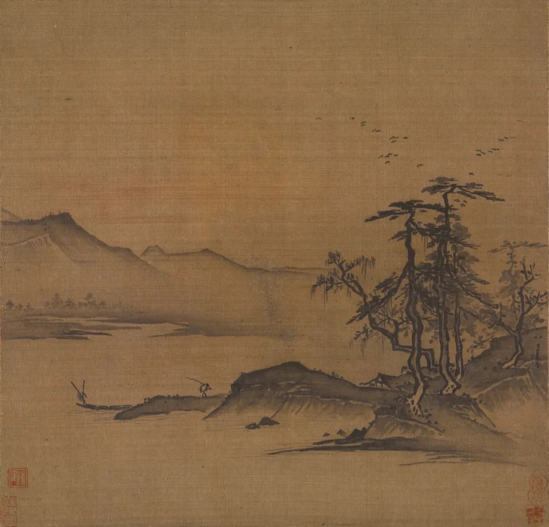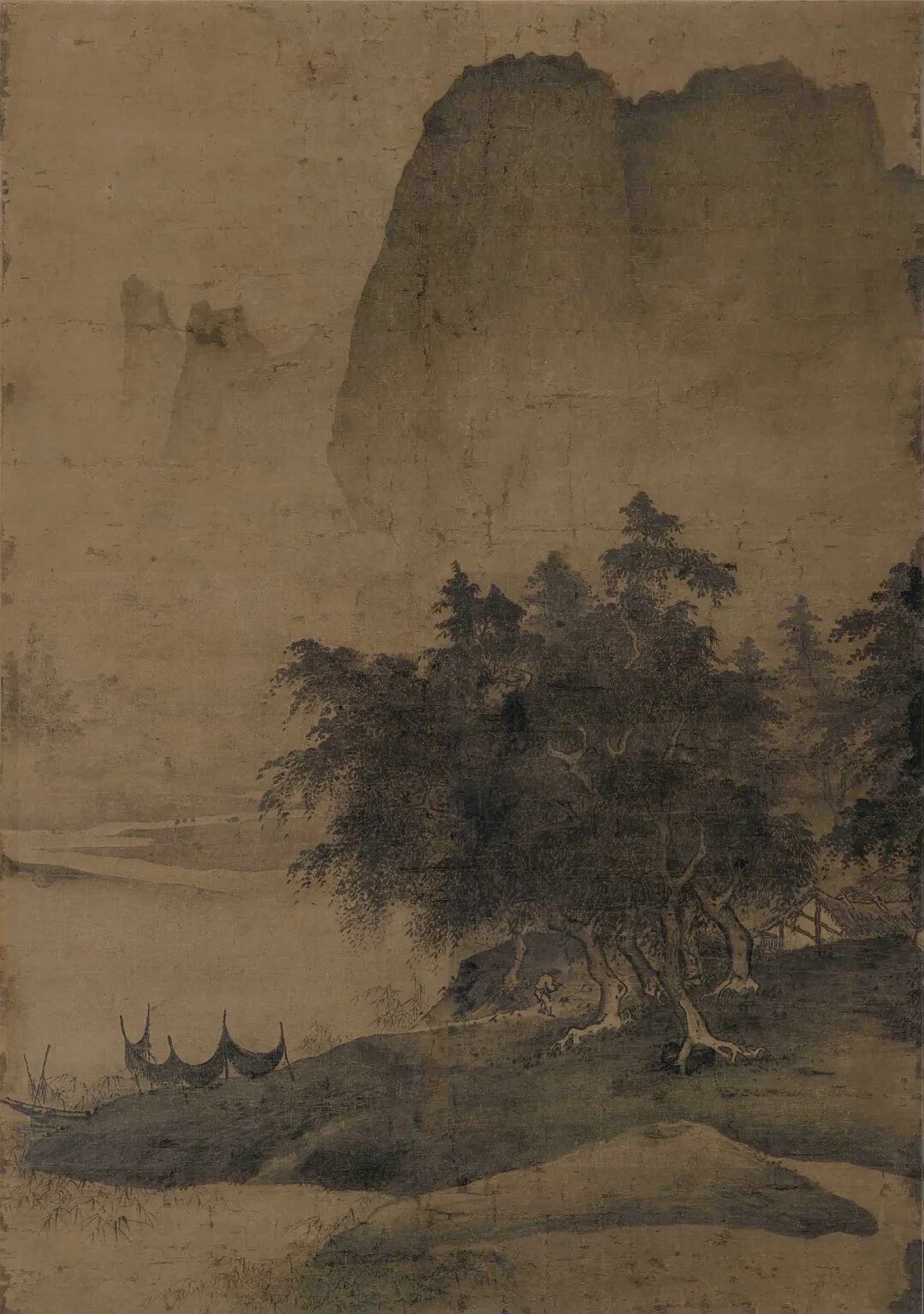 《暮色归渔图》(传) 绢本 墨笔 | 24.2×32.5cm 关注公众号:老窑