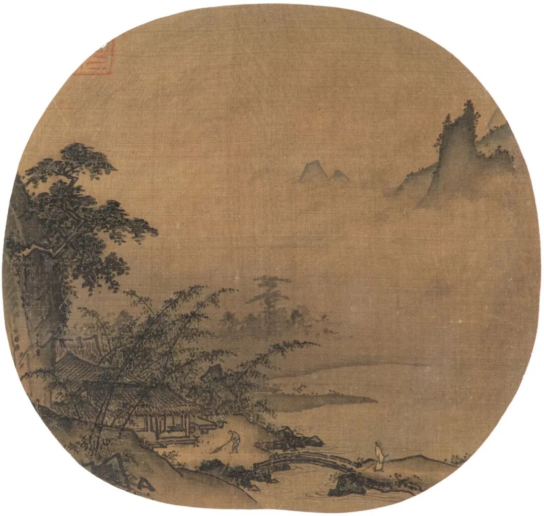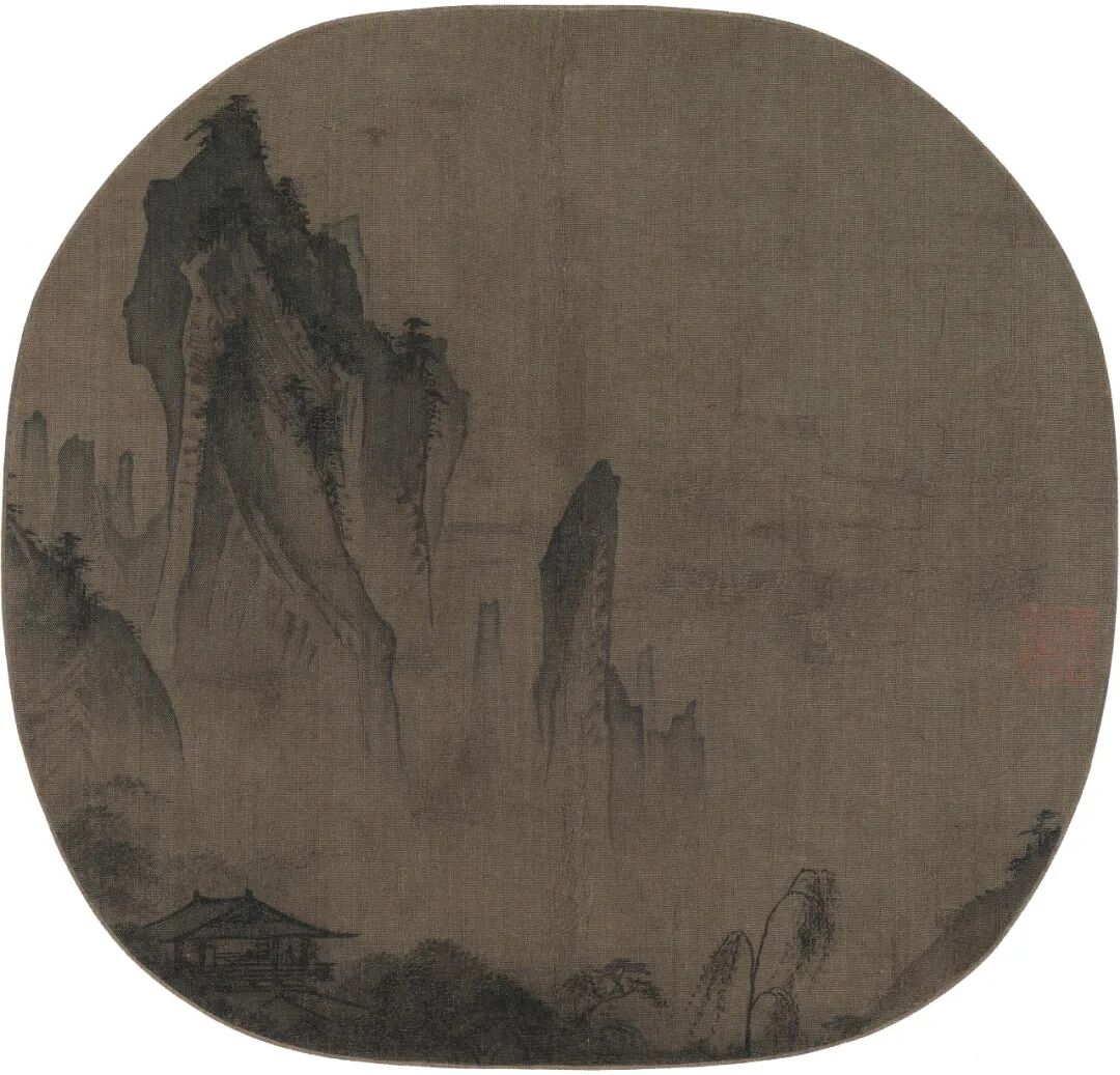 《遥岑烟霭图》 绢本 墨笔 | 23.5×24.2cm