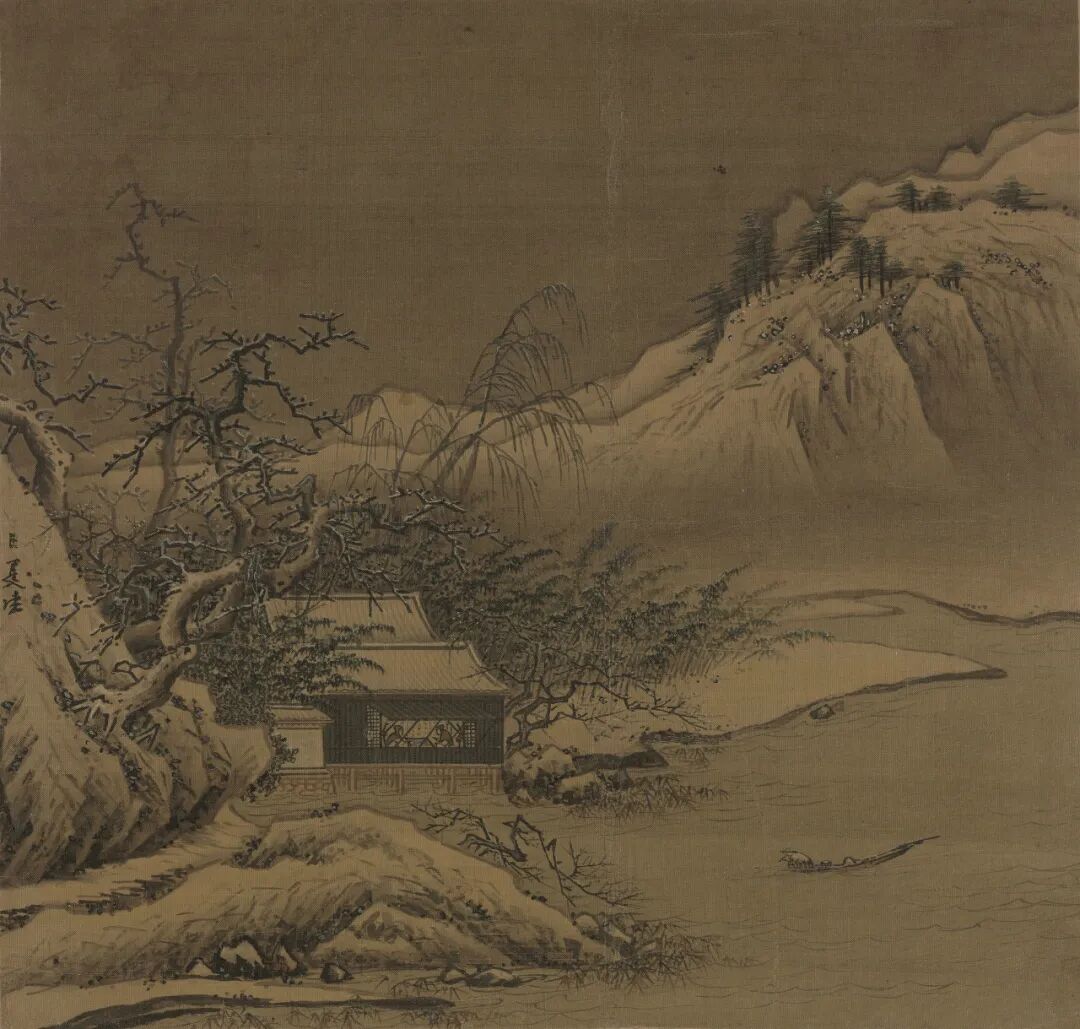 夏圭(生卒年不详),字禹玉,临安(今浙江杭州)人,南宋绘画大师。“南宋四家”之一,早年画人物,后来以山水著称。他在宁宗时任画院待诏,受到皇帝赐金带的荣誉。