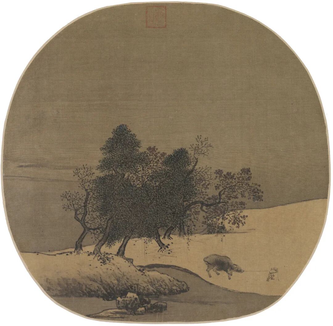 《柳荫牧牛图》 绢本 墨笔 | 24.2×24.7cm