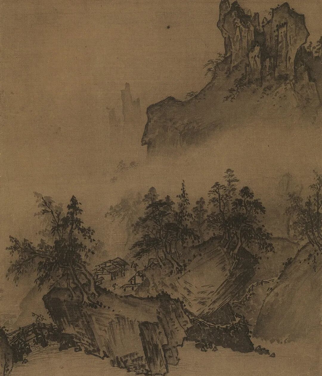 《山市晴岚图》 绢本 墨笔 | 24.8×21.3cm