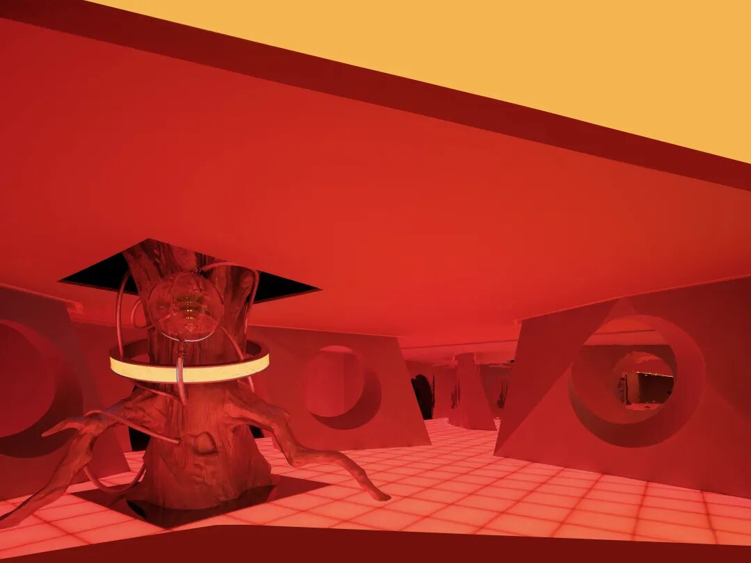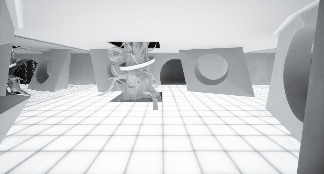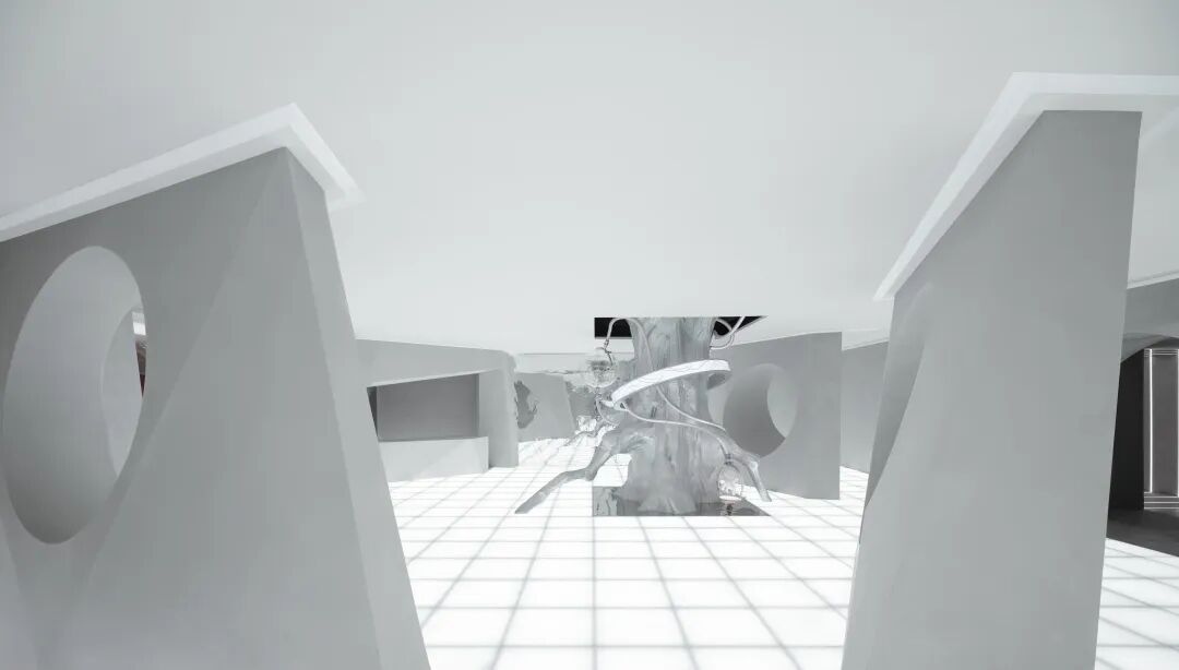 以巨石阵为原型开启通往新世界的交错空间,筑起一道虚与实的任意门,时间和空间在此静止和扭转,几何体的分布排列形成了由众多小世界集合的地带。