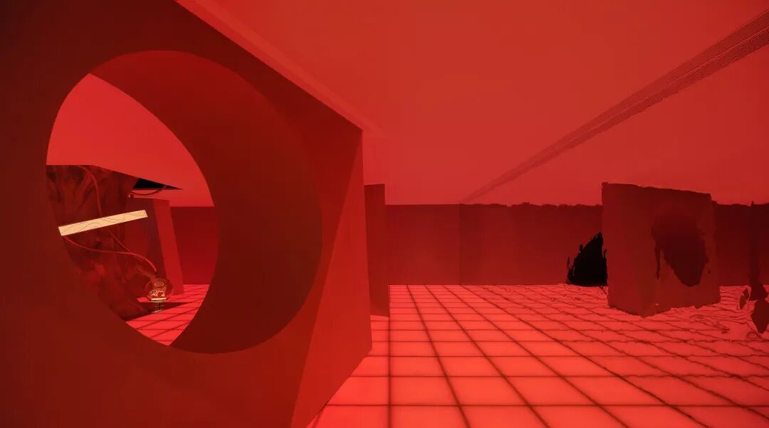 地板成为唯一主要光源,根据不同场景变化发出不同光效,光源透过镂空的圆孔,整个结构框架的脉络清晰可见,线性线条的利落美呼之欲出,让玩家在交错、穿插、重叠的视觉空间感受现实与虚幻的轮回与碰撞。