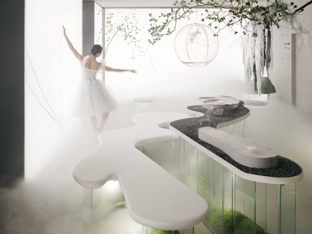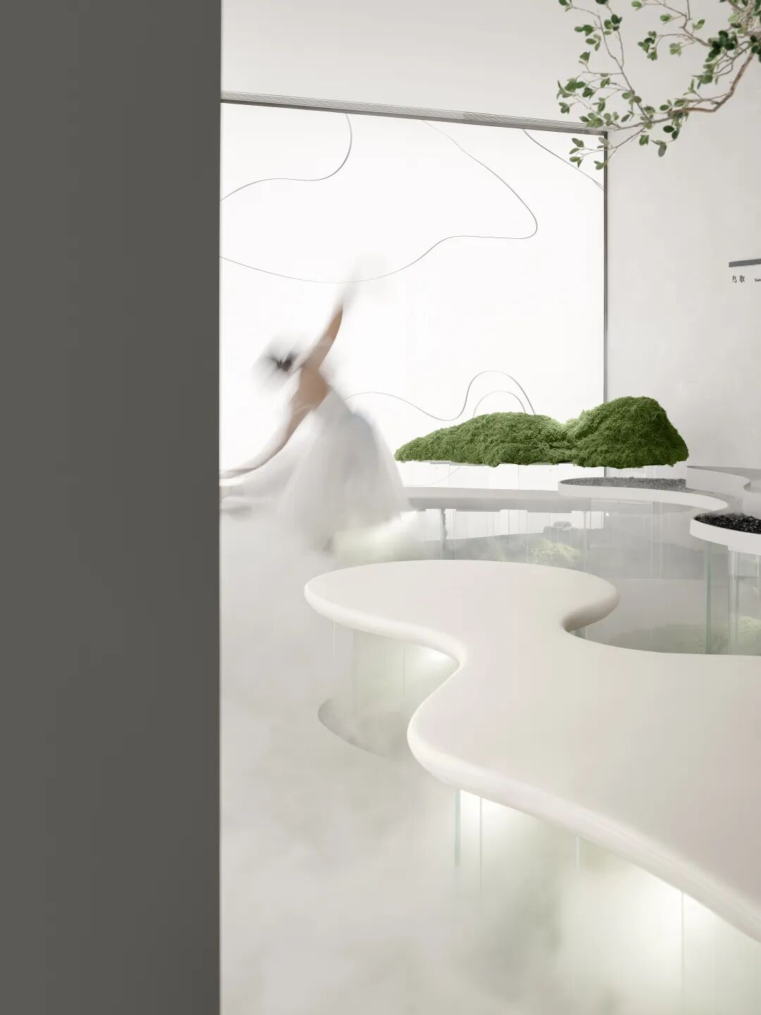 进入等候区,仿佛进入了无人之境的自然乐园,一抹夏日清凉游走在纯粹的白色之间,极致、纯净,犹如开启故事前的平静。
