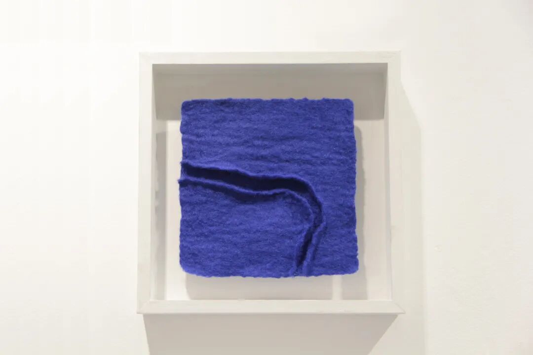毛毡材料表面的颗粒起伏、褶皱感使它具有一种生命的的质感。作品用蓝色来表现生命最本真的色彩,各异的毛毡形态在的特有的材质肌理下形成了各种不同的生物状态。