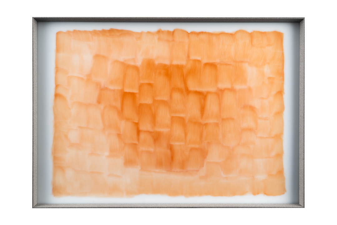 《光》的系列来自2019年的展览《光的故事》,我与合作伙伴余光鑫分别用交互、物质材料的方式表达了光的主题。作品的灯光交互部分呈现了微观中波粒传递的不稳定状态,与观众互动时产生的是类似火的橘色图像,这也暗自契合了窑火的隐喻,同时光影速度的变化又加深了人与光的连结与渗透,为空间铺垫了一条特殊的观看线索。在这个光的场域里不仅汇集了观众的个体信息,也包含了个体微妙的心灵投射。作品中陶瓷的部分,我选用矾红材料——它在传统陶瓷文化中经常被用来描绘神圣图像,在隐喻与感官体验方面都非常贴近光的特征。这件作品在两个维度里展现了这短暂又永恒的“人之光”。