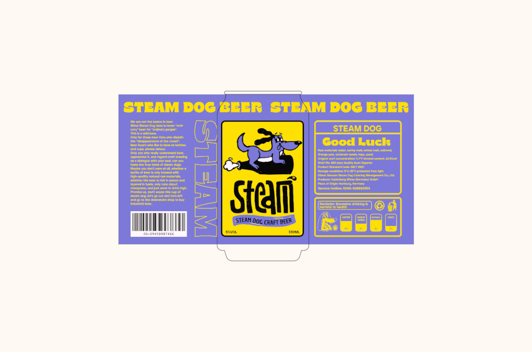 此外,在罐面设计上,还加入了动物IP作为插画主视觉,配合手写体的“steam”字样,增加包装复古感。
