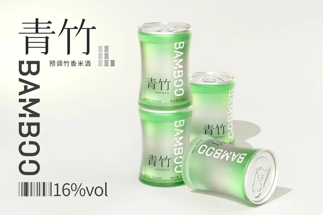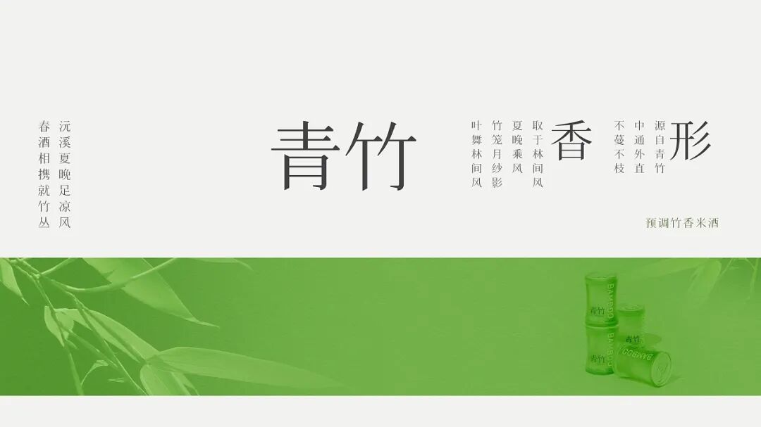 开篇就被竹子外形的酒吸引住,整体设计如其名--「青竹·预调竹香米酒」,不仅在瓶型设计上参考竹子外观,以中通外直的线条还原一节的“竹子”形状,还将竹香味融入到米酒当中,希望用户从外层视觉到品味酒本身,都能感受到清香淡雅的竹香。