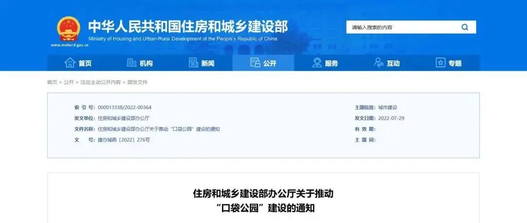 今年,住建部七月底下发《关于推动“口袋公园”建设的通知》。