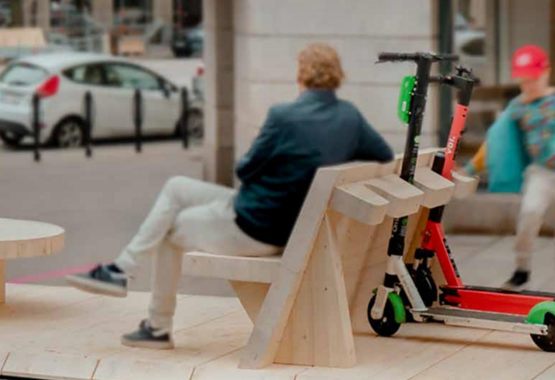 斯德哥尔摩某街道上的木制平台。图片来源:https://globetrender.com/2021/01/21/street-moves-sweden-one-minute-city/