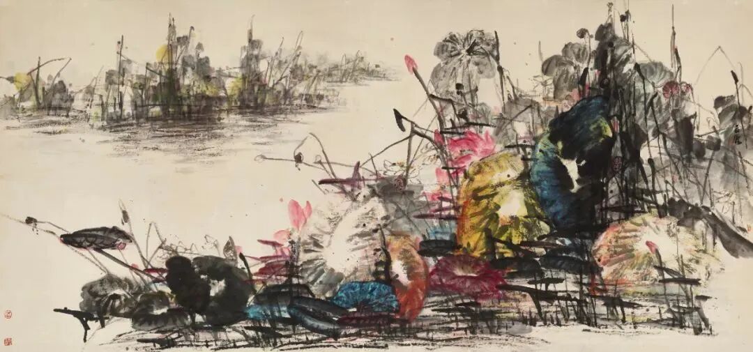 风荷    张立辰  中国画 143cmx364cm 1994年