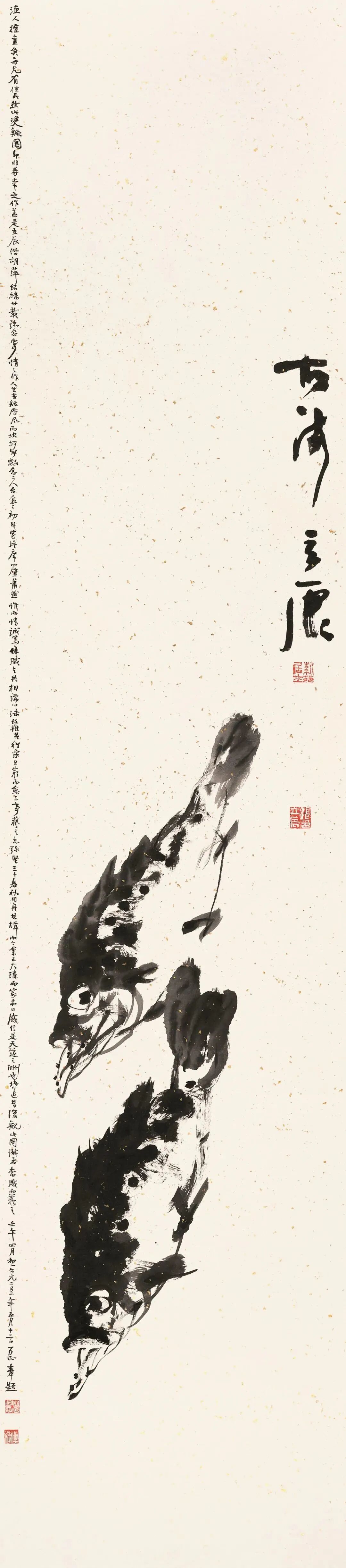 双鱼图    张立辰  中国画 230cmx52cm  2002年