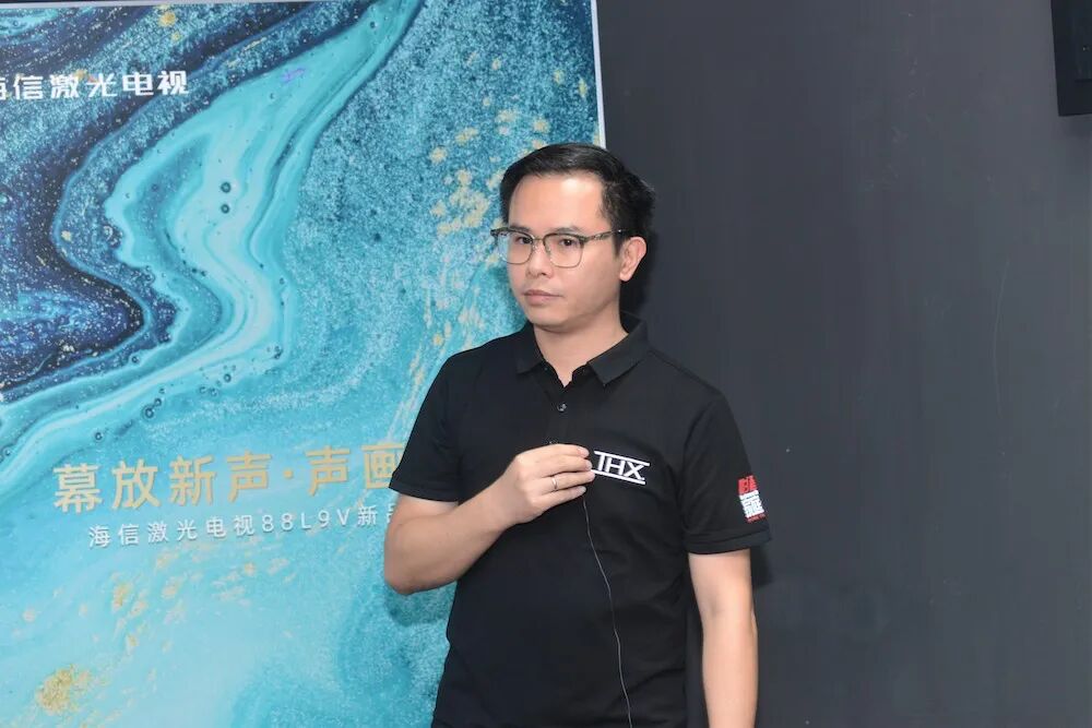 品鉴会在熟悉的《家庭影院技术》杂志社视听室举行。在《家庭影院技术》杂志执行主编李玮盛的主持下,海信视像科技广州分公司培训经理李建华先生介绍了88L9V全色激光技术在画面色彩方面的优势,再通过杜比视界、HLG演示片段,生动地展示出了88L9V激光电视在广色域与色准方面的过人之处。