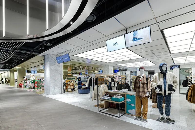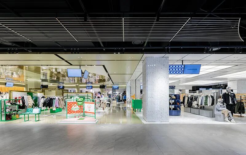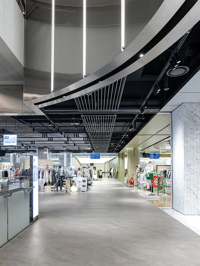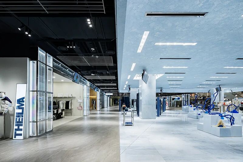 所选择的美学有意地从传统的百货商店美学中脱颖而出,通过使用数字屏幕和数字标牌强化的前瞻性设计词汇,赋予每个部分一种独特的美感,并为年轻购物者提供更诱人的购物体验。
