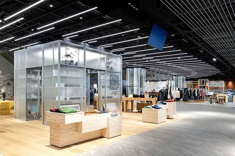 这是一家独立的内部百货公司,主要面向年轻人,主要是青少年,全国其他一些百货公司也有这种情况。这层楼的特色是设置,可以直接触动他们的情感。位于B2层,面积达6178平方米。(66499平方英尺),分为五个购物区,每个购物区都有独特的设计和色彩,都由两个中庭空间固定。如上所述,现代的U-PLEX地板面向精明的年轻一代,而超未来领域正是如此。这是一个以虚拟Meta平台为基础的新空间,融入了漂亮的高科技,不仅具有纹理、光线和颜色等吸引人的感官元素,还允许购物者进行互动。