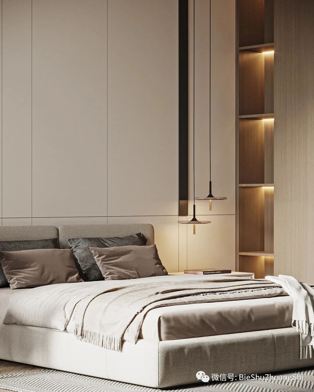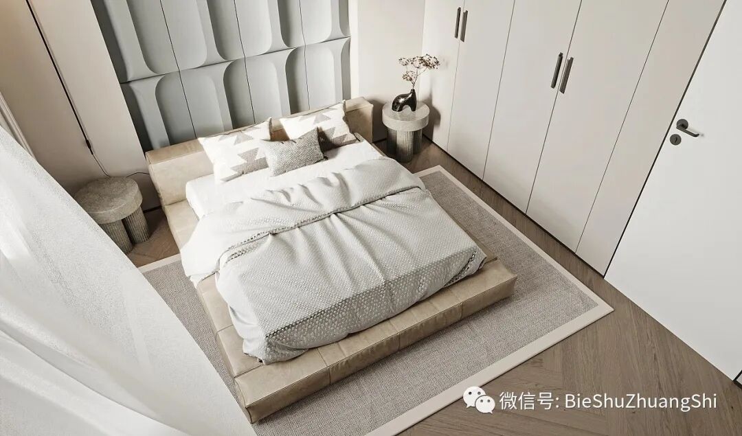 在纯粹质感下铺构空间关系,感知设计魅力,将简白含蓄的基调延伸出直观展现的睡眠场景,消释空间界限,打破常规,开阔视觉连贯性。