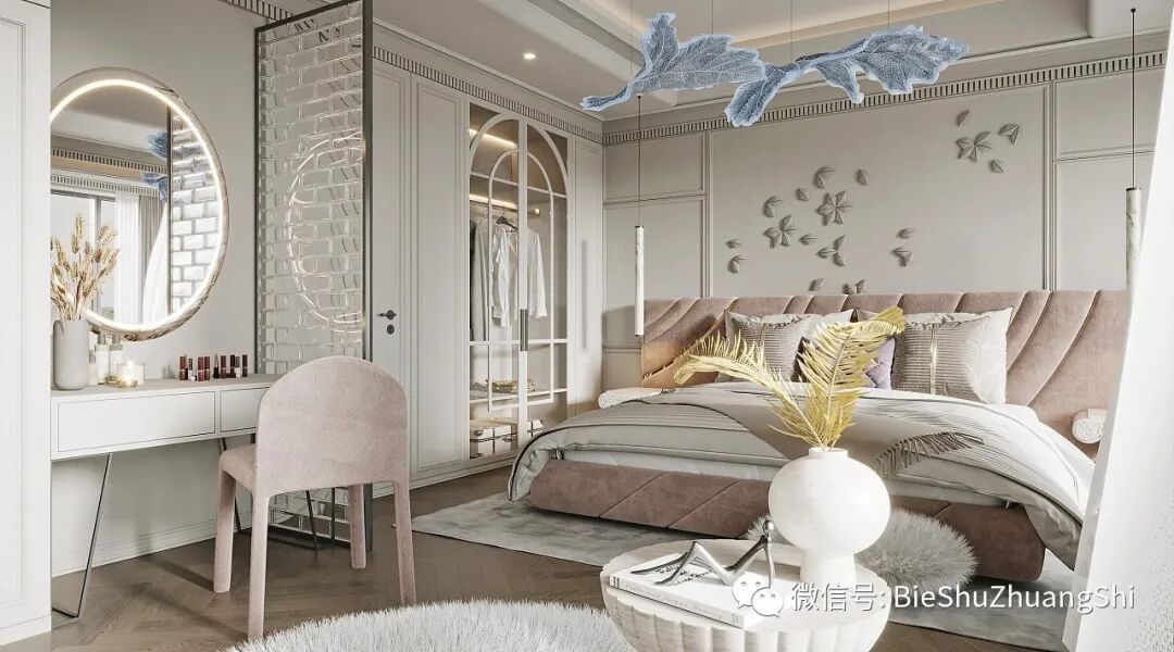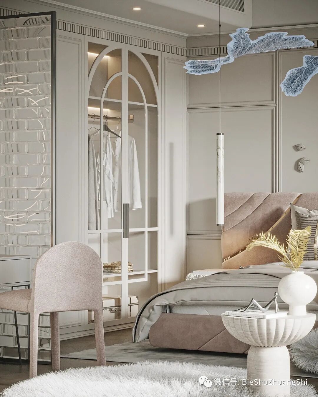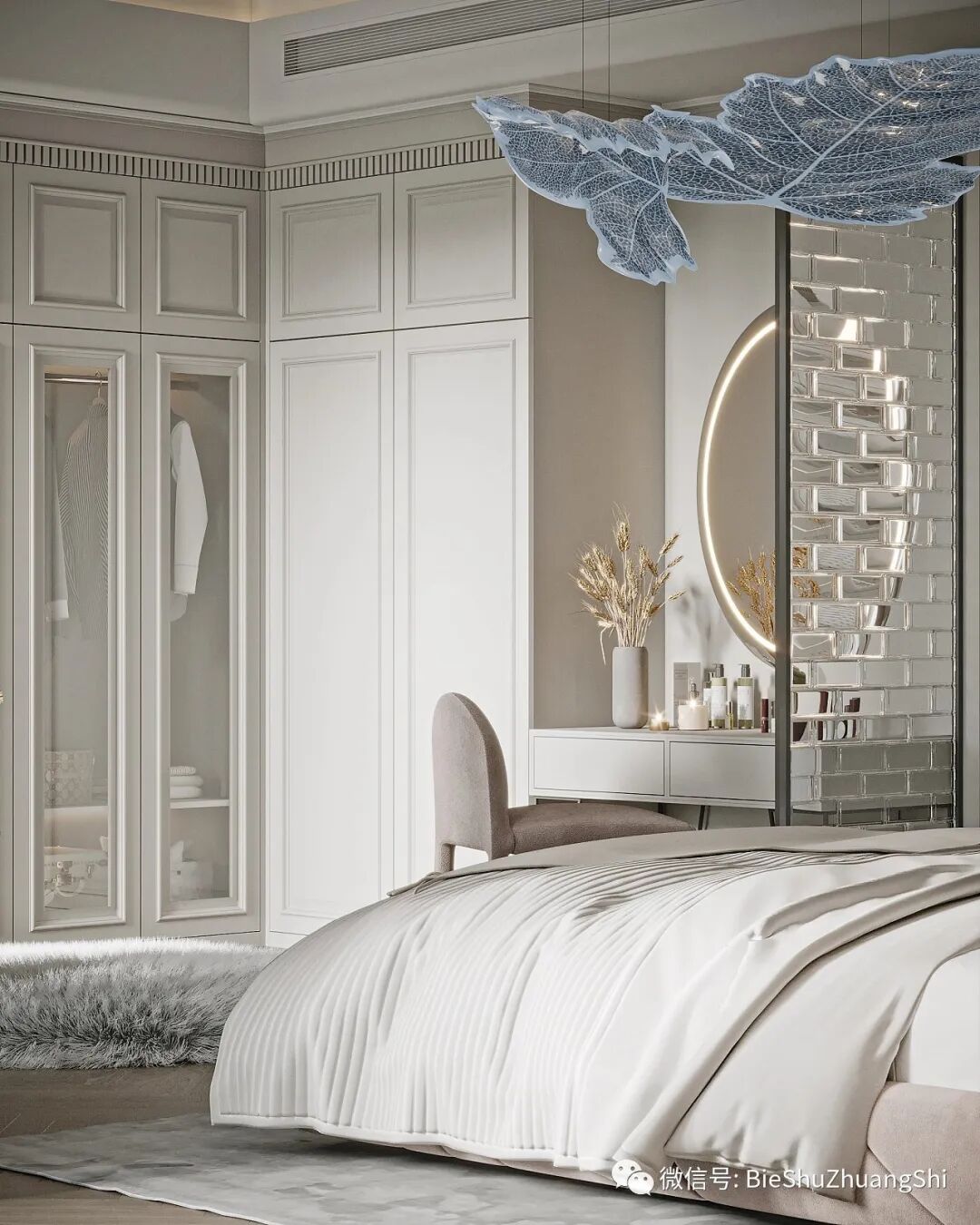 设计安排符合居者高端配置的定位,整个空间的框架严谨,将卧室匹配成套房的概念。