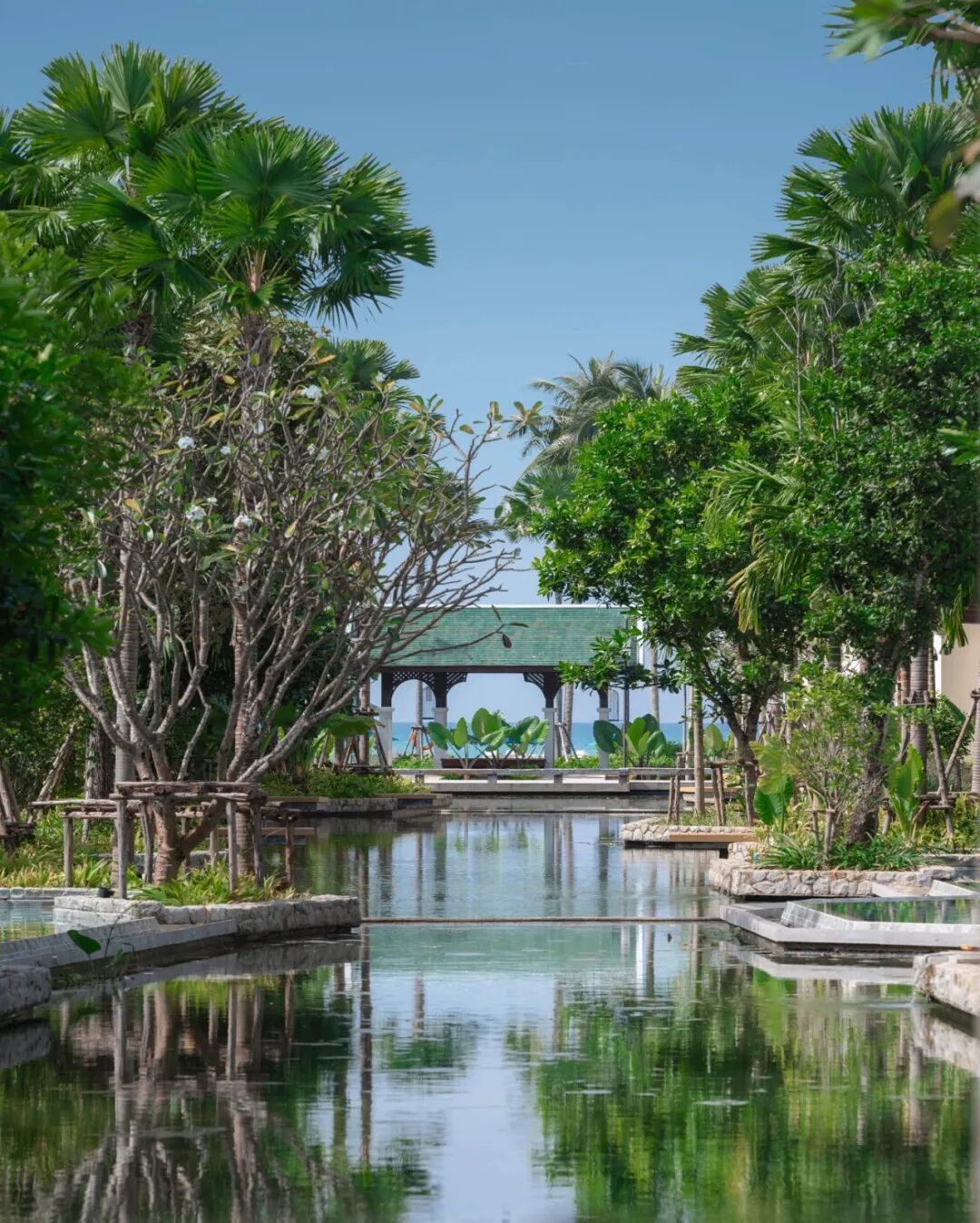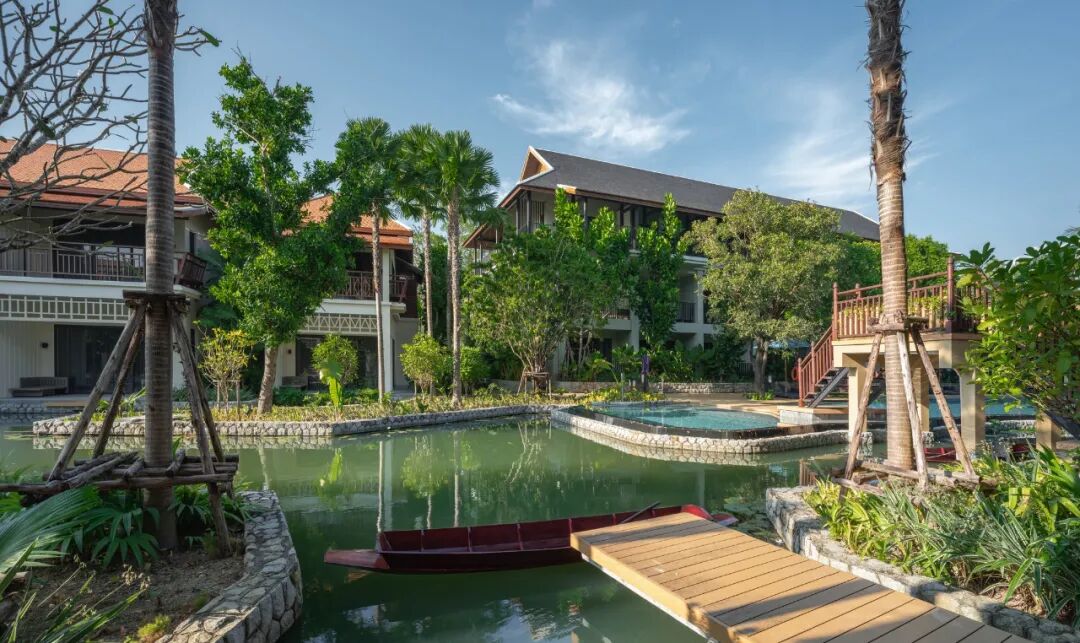 酒店客房为两层楼高的传统房屋,具有不同的朝向和外观,可以俯瞰泳池、运河和花园的独特景观。私人码头营造出宜人的热带氛围,为客房提供了私密的空间与无与伦比的景致。