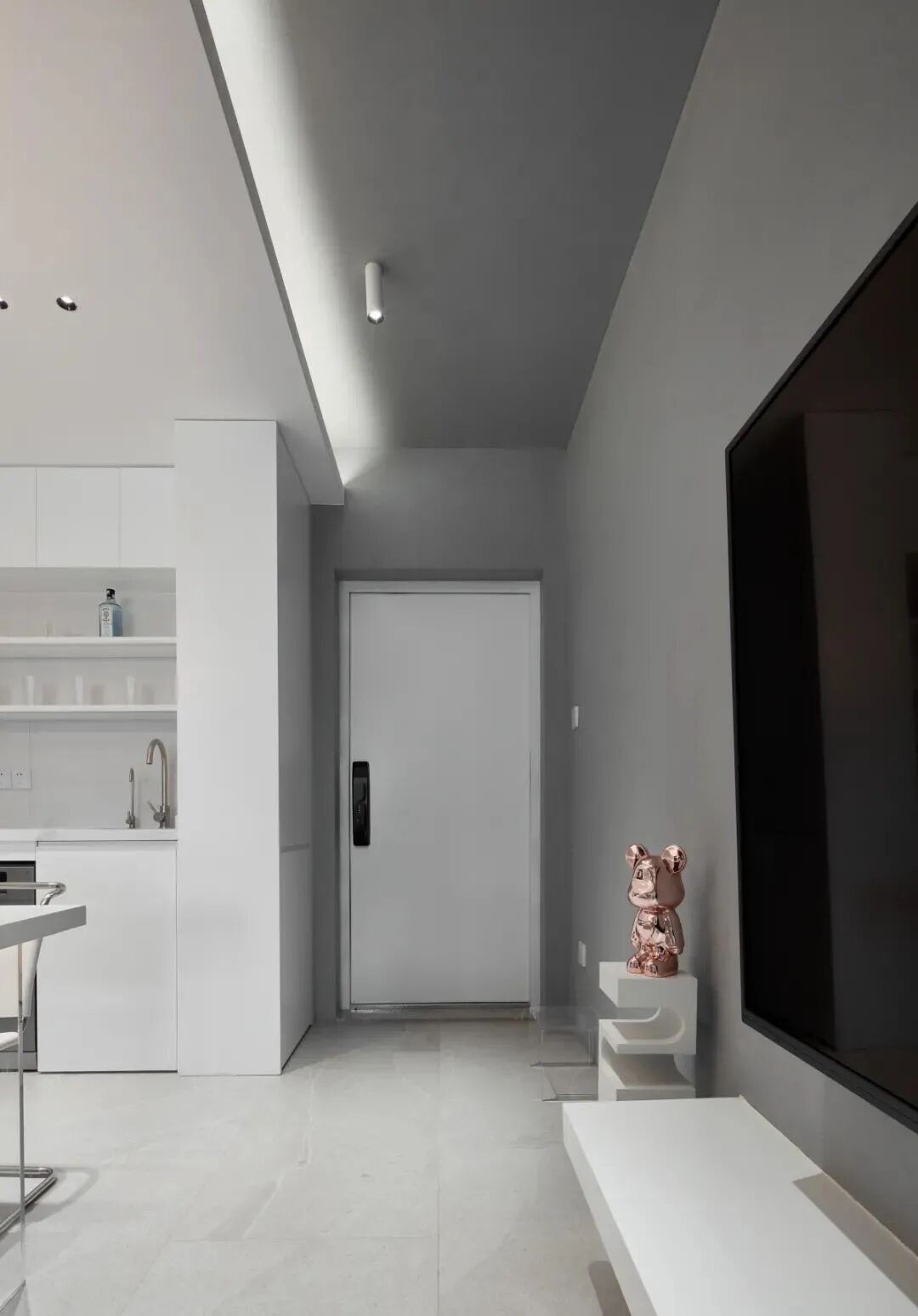 作品集2023-05-27 现代简约文艺小资范小户型 ▲ 项目面积58平,总造价35万,项目坐标:深圳,完工时间:2021年6月,本案打通不要的墙体,梳理动线,选择低饱和的基调妆点冷暖色灯光,呈现简约温馨的家 ▲ 拆除入户部分墙体,打造开放式厨房,使得空间的可视范围得到远超过原户型的空间享受,简单舒适 ▲ 客餐厅一体化设计,动线更合理,视野更开阔,顶面的灯光和弧线增加空间设计感,大面积白色与爵士白背景给整个空间带来清爽舒适的氛围 ▲ 客厅,以白色和灰色为基调,增加空间层次感,沙色丝绒弧形沙发+极简轻盈的茶几,叠加与弧线元素的灰色背景,因为灯光的加入赋有格调 ▲ 电视背景贯穿客餐厅,纯粹的灰色墙面搭配白色柜体,家具颜色在选择上也保持统一,显得空间尤为整洁 ▲ 设计隔层展示艺术品,不仅没有破坏整体协调感,使得空间轻微分离却紧紧相依 ▲ 以隐藏式推拉门作为客厅与主卧分界,视线可穿透至窗外的景色,感受四季更替 ▲ 主卧,延续整屋的简约风格,水泥灰提升空间的质感,灰色背景和床体色调一致,给人宁静舒适的居家氛围 ▲ 小空间也要注重体块关系,床尾靠墙设计书桌与柜体充分结合 ▲ 过道,将不同功能区域交汇相连,采用半拱形的门洞设计,视觉上有延伸 ▲ 卫生间,洗漱台外置,玻璃隔断实现干湿分离,大面的镜柜足以解决卫浴空间零散的收纳需求,同时让空间得到更大的延伸,造型简约美观 ▲ 卫生间湿区,长虹玻璃的磨砂门确保隐私又有颜值 ▲ 拆除原房间墙体,打造音乐房,隔出洗衣区,黑白灰搭配蓝绿,墙面置顶选择一个颜色,原本的直角换成弧线,拉伸视觉感 ▲ 音乐房,靠窗设计转角卡座,休闲娱乐皆舒适,不同质感与不同层次的色调专注于感受空间和光线,静静的感受生活带来的美好 本文来自微信公众号“亚太室内设计”(ID:ytsnsj)。大作社经授权转载,该文观点仅代表作者本人,大作社平台仅提供信息存储空间服务。 TAGS: 空间背景舒适设计 相关文章Kleoniki Andr…这是大王Day.281获奖作品《2020最佳图书…精选头像|搞怪来袭!安东尼奥·布埃诺 作品配色清新梦幻的场景插画,充…美国Jennifer Mc…【小鹏设计】设计小改/动力…【首发】地点空间丨打破空间…谢商家不坑之恩!只骗有钱人…