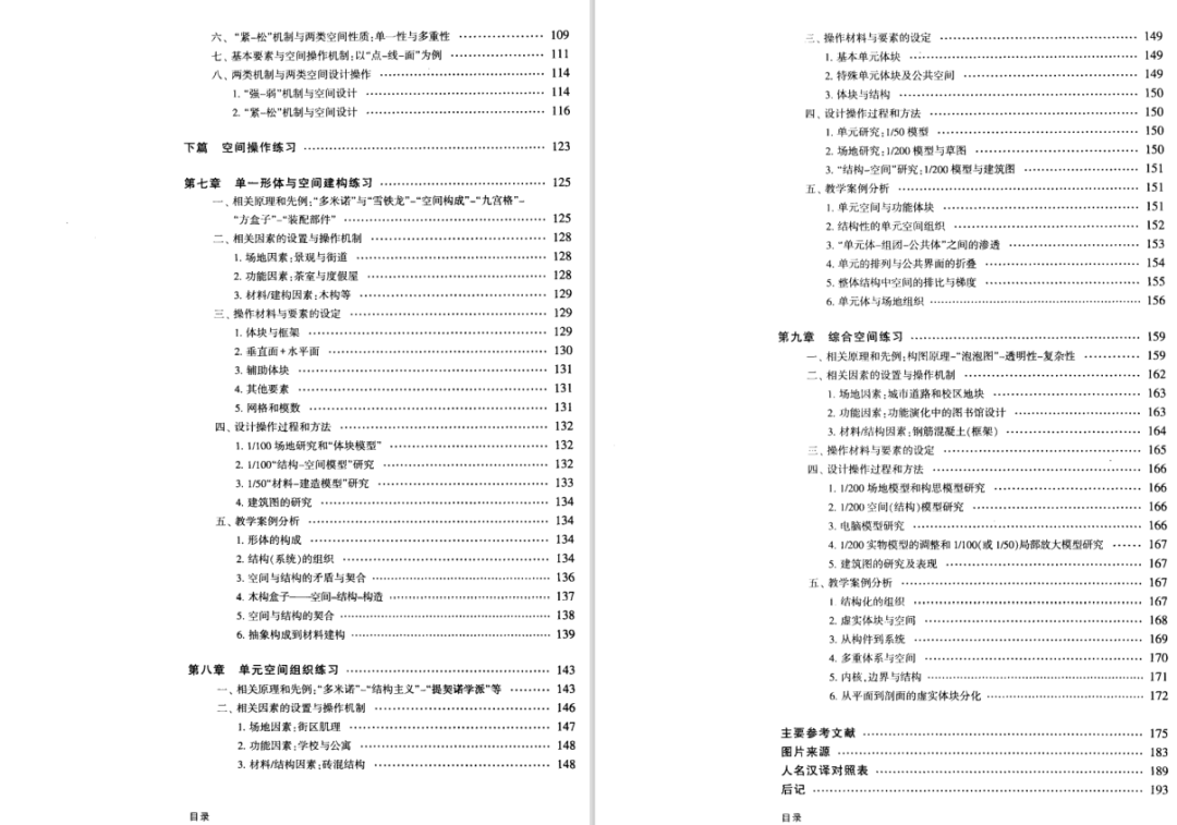 第一部分(上篇)有关空间设计的操作模式,从对相关传统和基础材料的解读中,梳理出“体量与构图”、“结构框架与自由平面”、“抽象要素与构成”,以及装配部件与形式结构等空间操作模式。