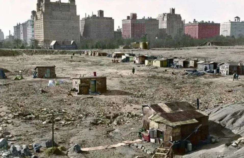 ▲美国经济大萧条时期中央公园失业者的流浪屋