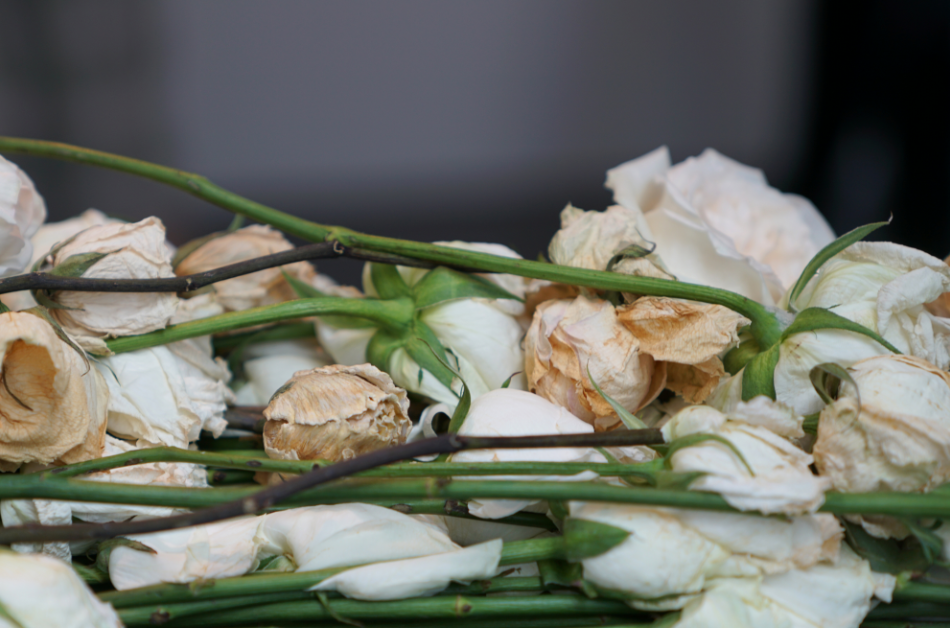 当时对花进行了最基础的选择,它需要一年四季都能在花房里买得到,比如说白玫瑰,我本意是想作品中带有祭祀时间的感觉,但是白菊花除了清明时节,在其他时段是很难订购的,我就选用了比较常见且易成型的玫瑰,再运用德化的捏花技术去制作瓷花,最普通常见的花也最易让观众共情,而白花也最易看出颜色的变化,将盛放与枯萎的颜色对比放大,更易察觉时间在事物上留下的痕迹。