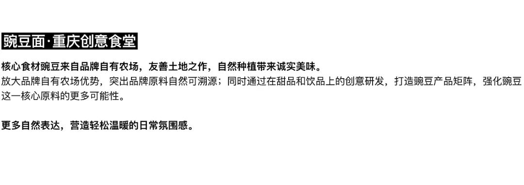 设计上,放大品牌自有农场优势,突出品牌原料自然可溯源;同时通过在甜品和饮品上的创意研发,打造豌豆产品矩阵,强化豌豆这一核心原料的更多可能性,以更多自然的表达,营造轻松温暖的日常氛围感。