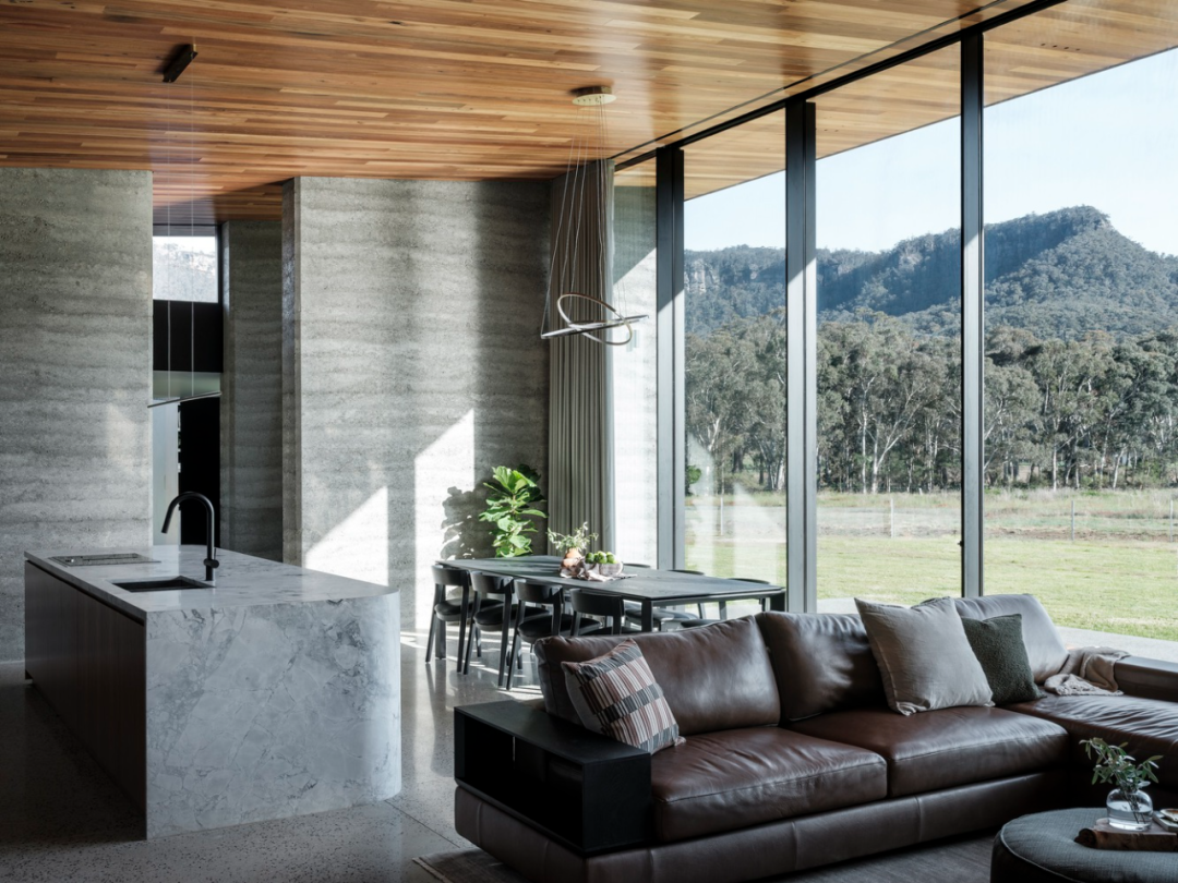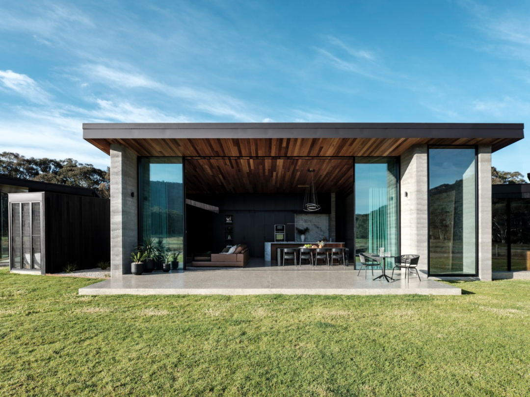 今天分享的这个「Golden Vale House」的别墅,就将灰色夯土墙作为主要建筑元素,通过精湛的手工艺和现代建筑技术,将其与现代设计完美结合。