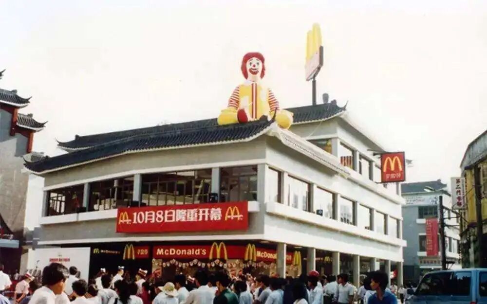 肯德基入华后第三年,麦当劳也在1990年进入中国内地市场,第一家门店选在了广东省深圳市罗湖区的商业步行街。