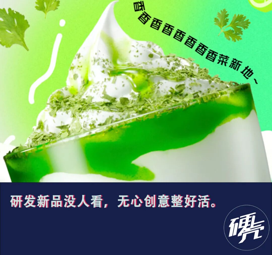 “当年杯盖都要舔干净的草莓新地,如今画风突变推出了油泼辣子和香菜口味。”