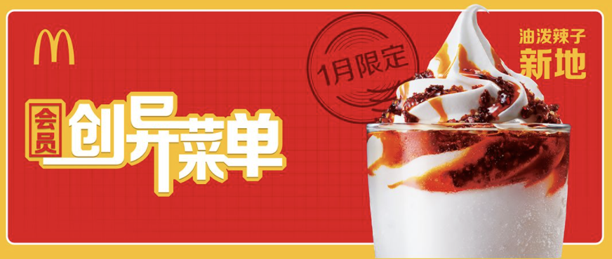 2021年1月,麦当劳又推出了油泼辣子+冰淇淋的魔幻组合。
