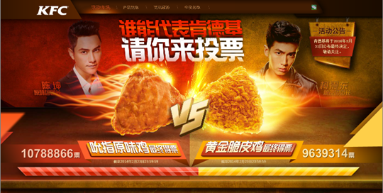 前些年,肯德基就曾推出一项市场活动,把旗下的经典产品吮指原味鸡和新产品黄金脆皮鸡摆上擂台,让消费者投票“谁能代表肯德基”。