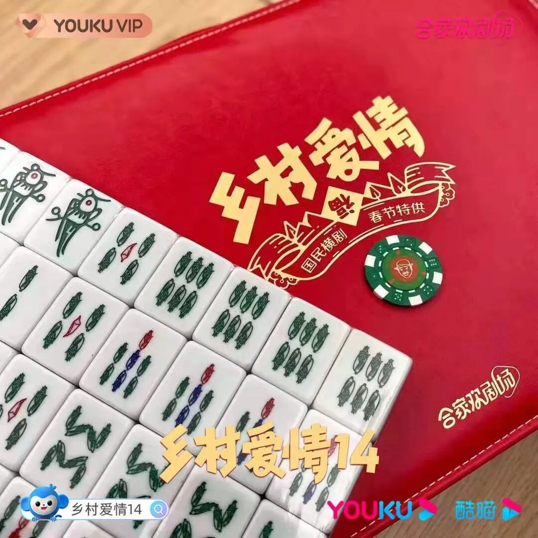 除了盲盒,《乡村爱情》作为国内最长寿的影视IP之一,最近几年在开发IP价值上持续发力。在《乡村爱情14》播出前夕,官方还推出了“乡爱春节定制麻将”,专供春节娱乐使用。周边产品开发与剧集宣发相辅相成,互相助力。