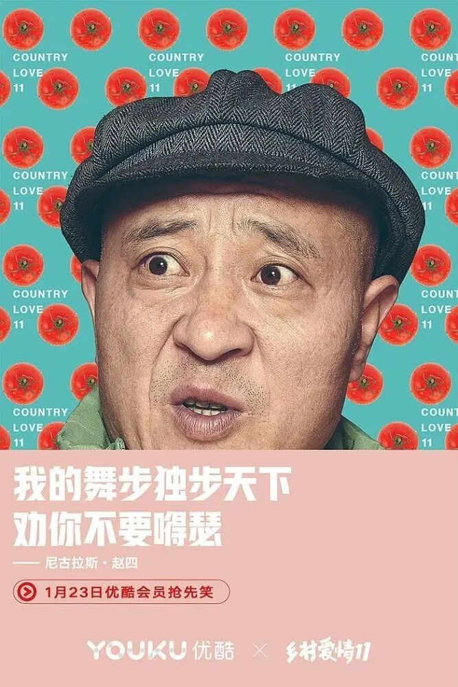 《乡村爱情12》的人物海报,同样延续了土潮路线。海报用对话框的形式显示角色文案,极具现代感。