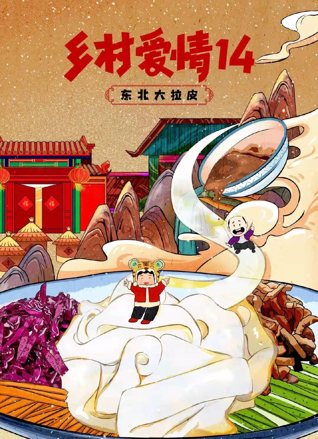 为了给《乡村爱情13》预热,官方在农历牛年之际发布了“五牛图”横版海报。不同于此前的现代潮流,“五牛图”充满浓郁的传统文化气息,水墨画的质感彰显出东方韵味。不过海报中人物身上穿的东北大花袄却有着Supreme的时尚感。五张海报展现了五组家庭的幸福景象,同时也包含了“福、禄、寿、喜、财”的新年祝福。
