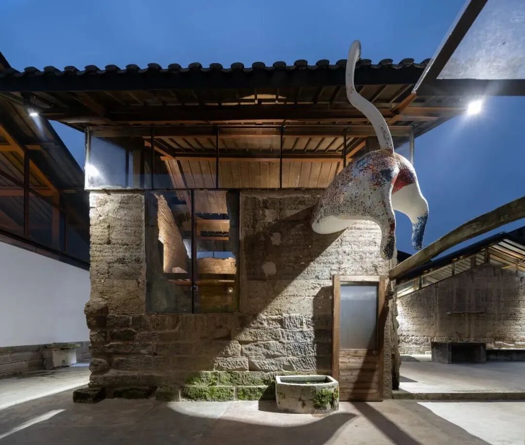 刘 老房子上都有一年一年贴春联,那些纸扎跟胶扎,非常带劲。我本来想保留这些痕迹,但之前施工时候乡建馆的外墙意外被刷白了,为此我惋惜了很久。