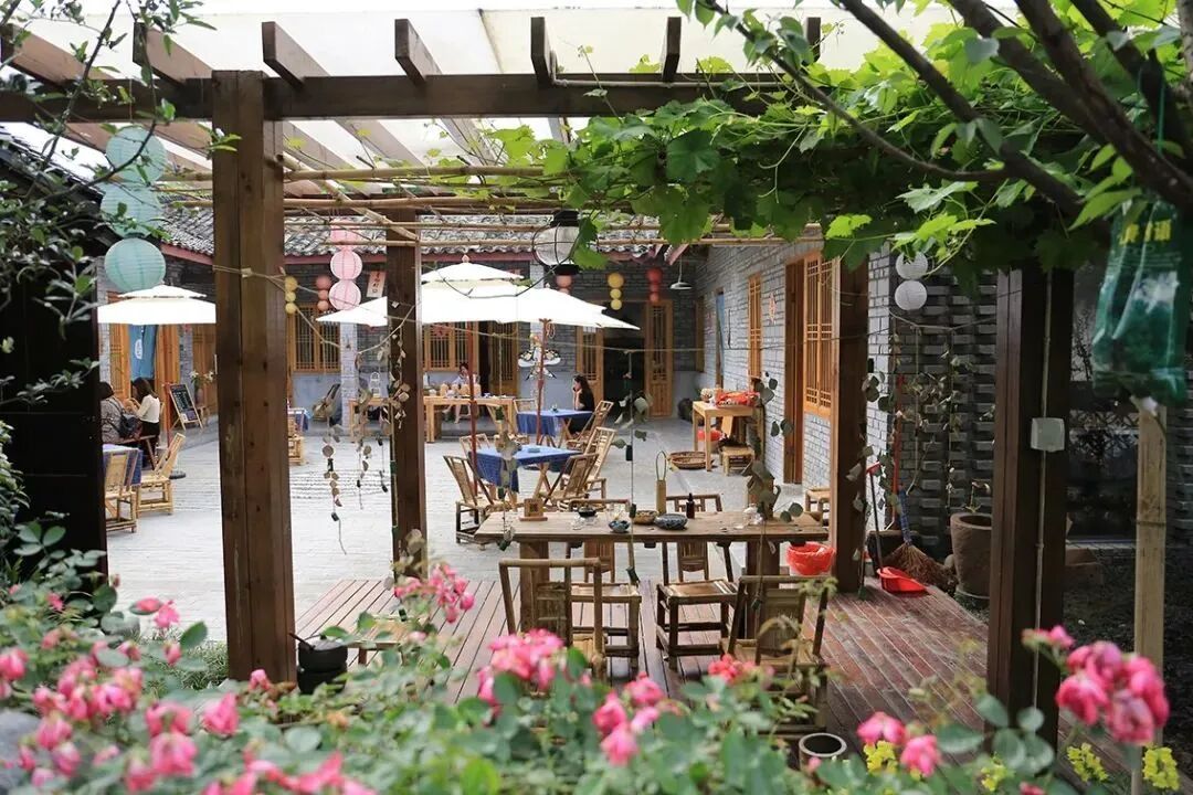 三径书院:书院作为文化开放空间,有着浓厚的川西民居特色,镂空的青砖围墙,古朴而雅致。平时做图书阅读,办放翁讲堂、公益课,当地村民可以随时来看看书、喝喝茶,以促进文化的交融,这种生活方式和社交场景的搭建让更多人有机会在大自然中、在诗书里,满足内心和精神层面的需求。