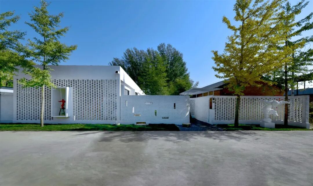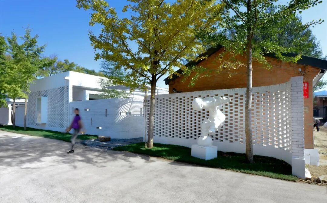 ▽入口弧形镂空墙形成空间导向