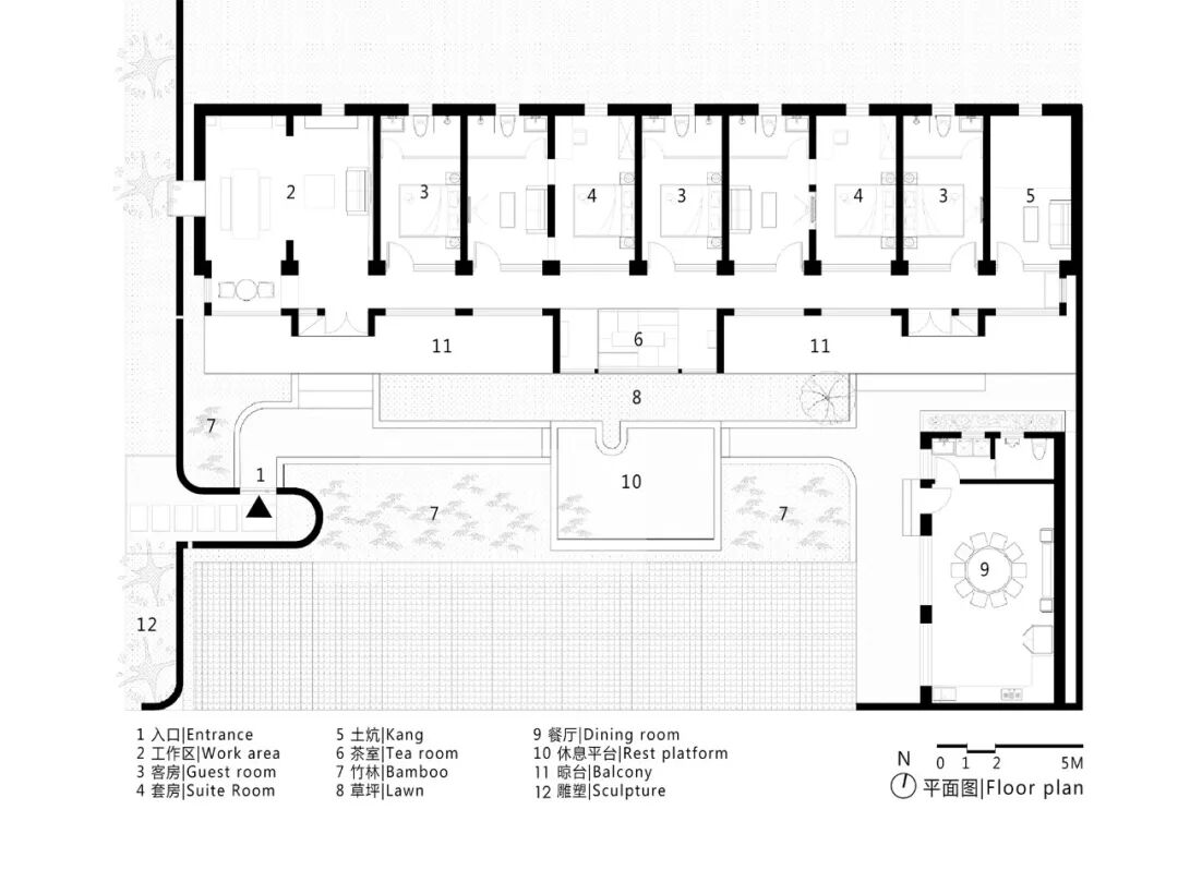 项目位于北京市京郊舞彩浅山之下,村落边缘。作为村落肌理的组成部分,我们希望更新之后能够为村落肌理添彩同时创造出一个个性的精神空间。《竹里馆》是主人书法创作、会客、短期居住的场所,整体以艺术工作室的诉求进行设计。