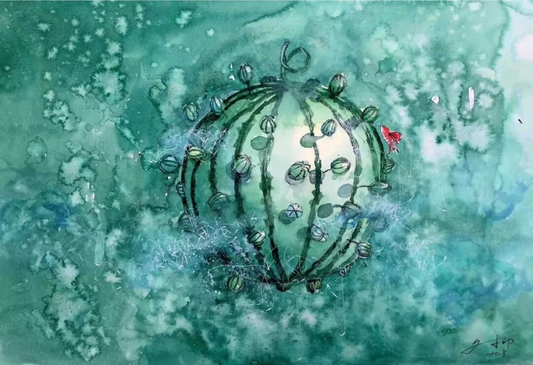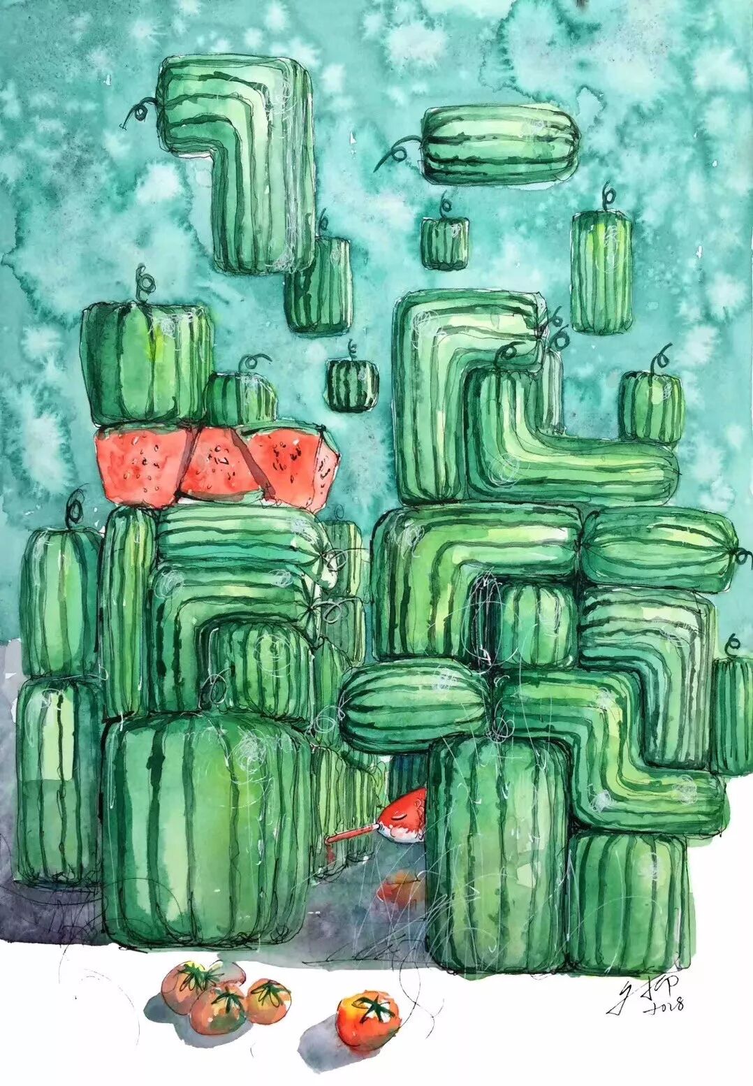 4.水彩的优点是透明,所以要表现出通透的质感,第一遍的色彩大多边界可以互融,使得整体统一柔和。