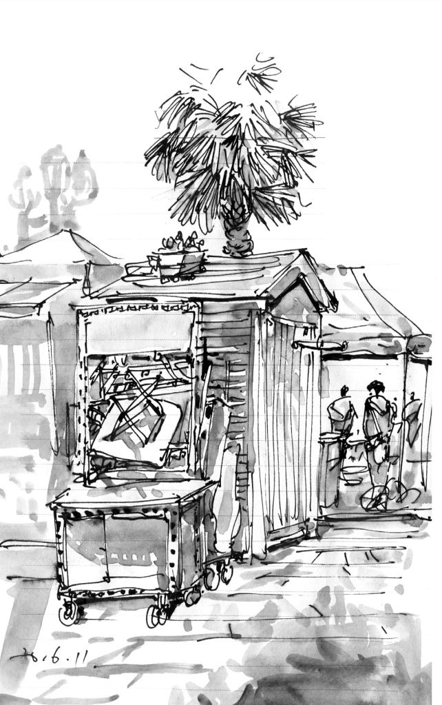 1.在线条不够熟练的情况下就先用铅笔起稿,透视关系没有问题之后再用钢笔描线,画钢笔线条的过程中也要时刻想着基本线条的用笔和要点。