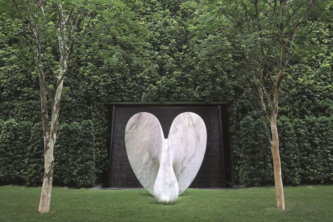 Secret Garden 内放置了由艺术创作家萨璨如创作的大理石雕塑 Orchid II ,以极简的美学与材质微妙的肌理变化,演绎出平衡、轻巧、流动的境界。巨型弧形玻璃幕墙巧妙地将会所内外景致相呼应,让人犹如置身于现代艺术馆之中。
