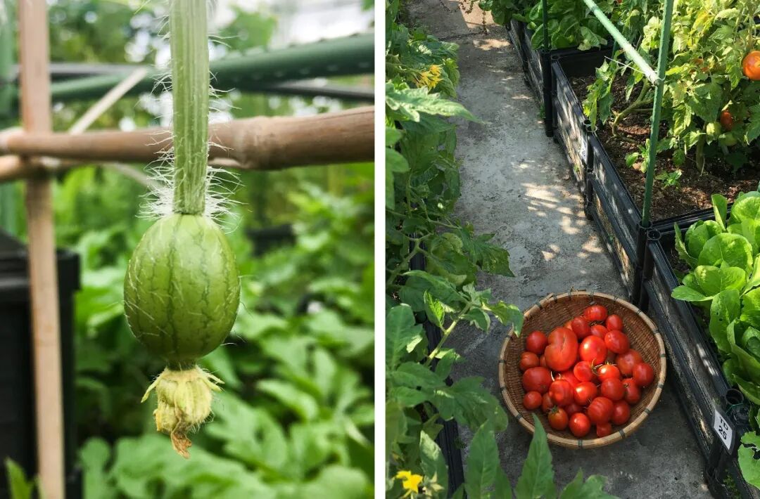 鱼菜共生是一个自动化灌溉的系统,平时往鱼池里投喂有机粮、菜虫,再用含有鱼便便的水浇灌作物。有机耕作区是在田土里种植。