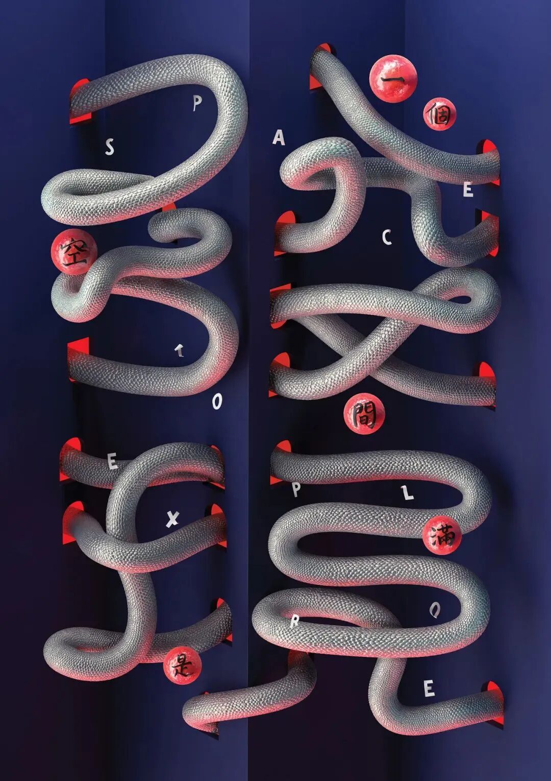 海报主题为Space to XX(一个空间满是XX),通过繁体汉字为基础,各种天马行空的创作手法,插图、3D 动画、粘土雕塑和动态AE等等.