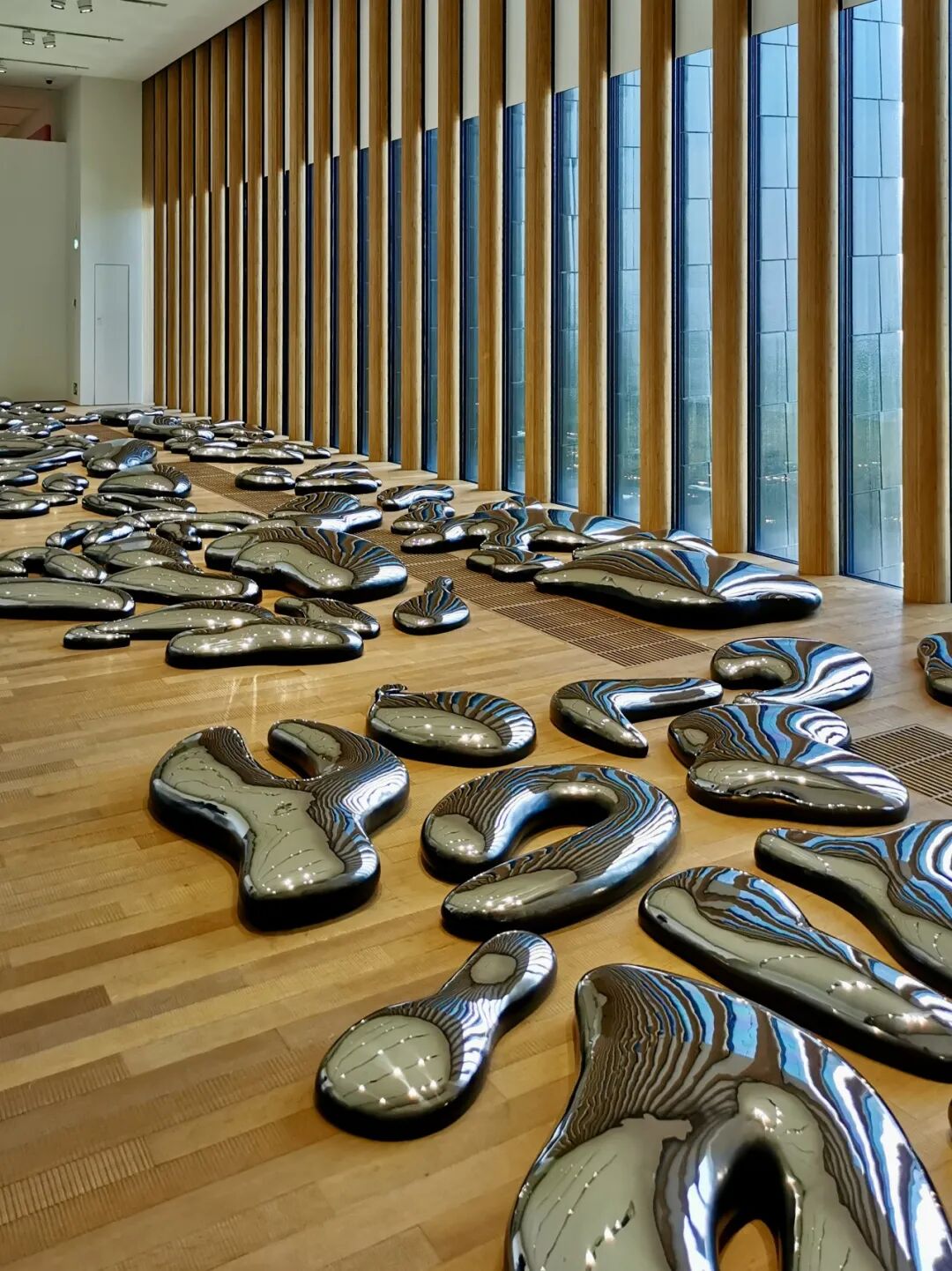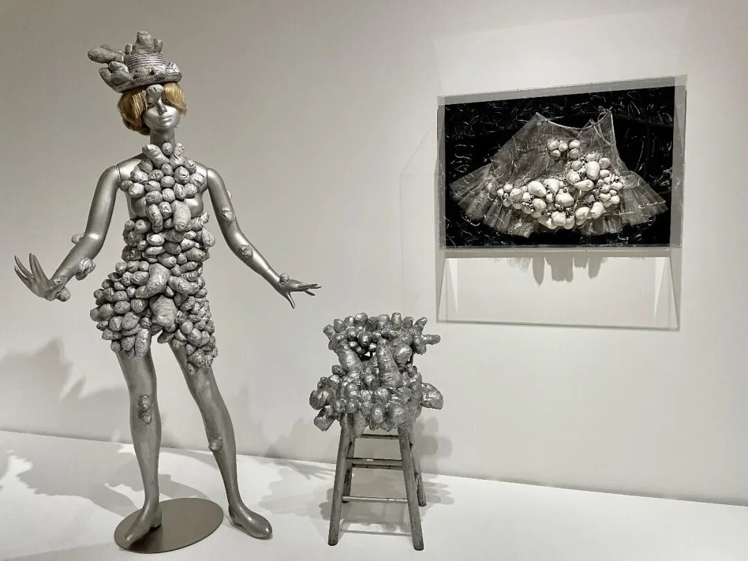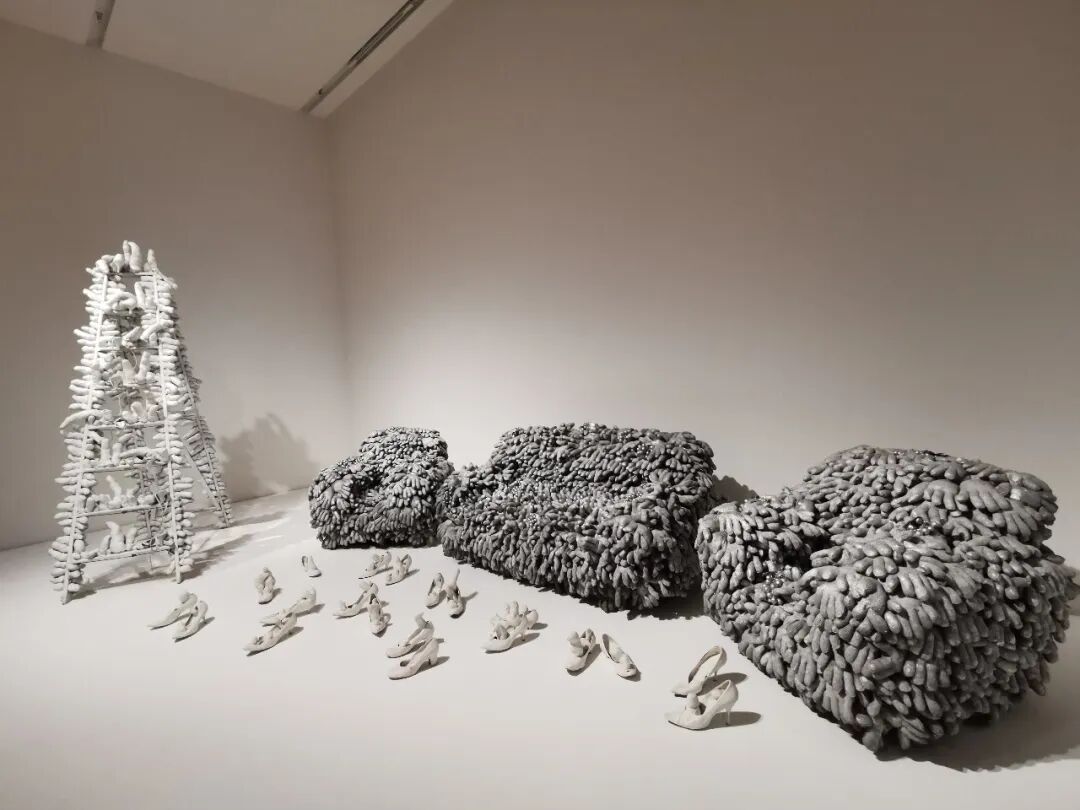 小时候家附近河道中“数百万个白色石头”给了她“积累”的灵感。乖张的、膨胀的、层层叠叠的填充,又像是无限生长的肿瘤,又像是阳具,又像是盲目消费的隐喻,极大地刺激着观众的感官,而草间弥生自己则在制作的过程中征服了自己的恐惧,与分裂的自我和解。