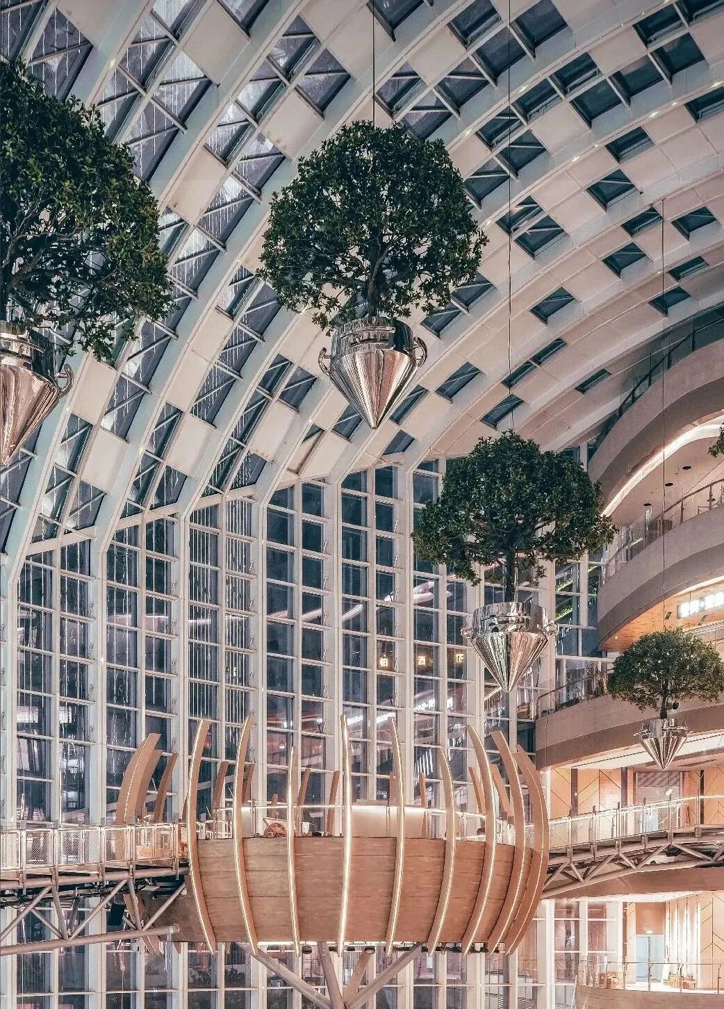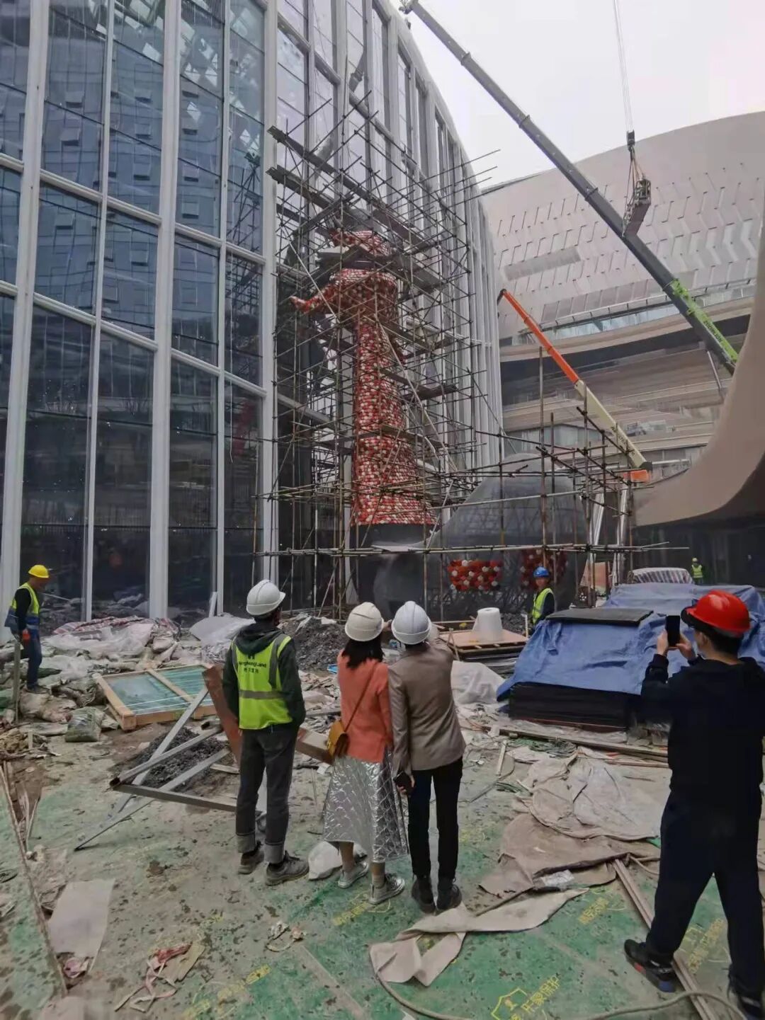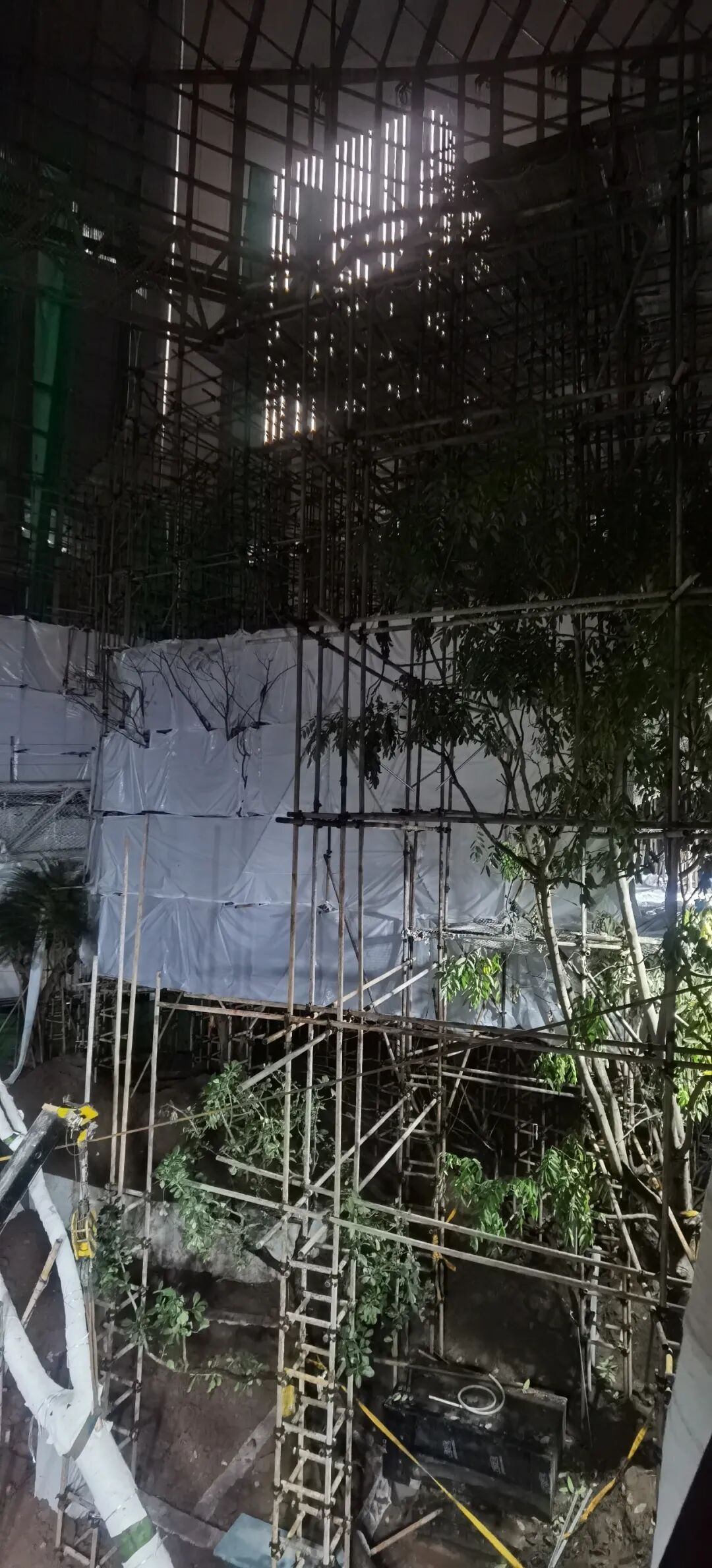 “大家都不知道,我们的悬浮树原本有8棵,后来因为施工安全问题不得不取消了一棵;因为交叉施工的问题,建筑内部搭满了满堂架把植物包在其中,很多运输和安装的工作只能在高架上完成。