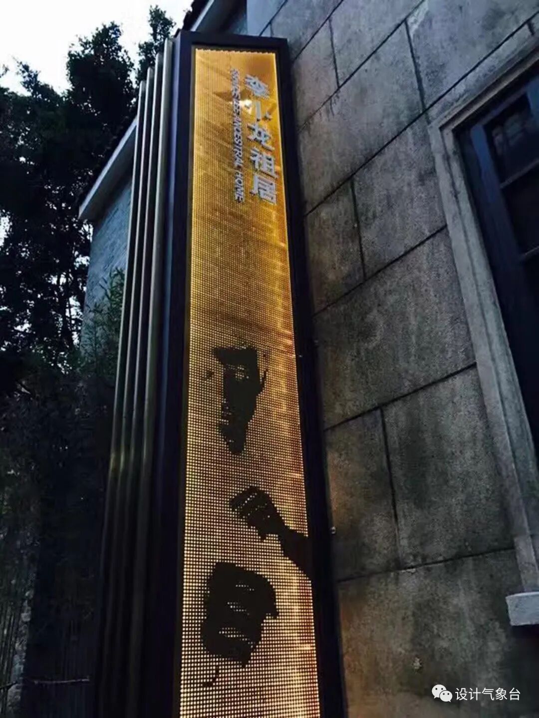 利用李小龙的剪影作为李小龙祖居入口花园的标志性图案,入口处打造的有竹林,用瓦砖做的细部装饰等。