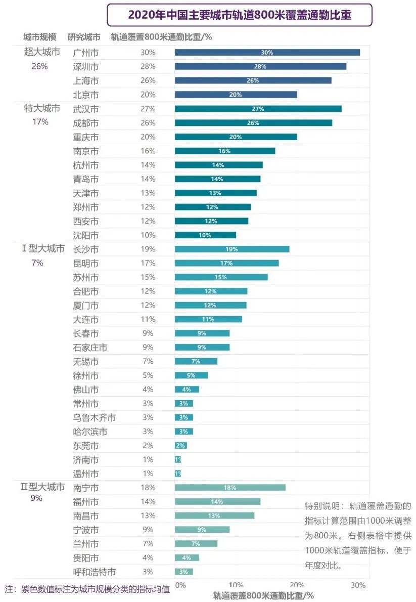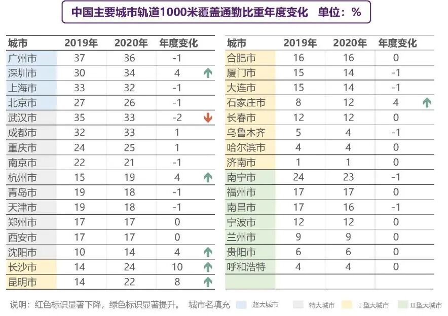 轨道覆盖:新开通轨道线路1000公里,轨道覆盖通勤比重仅提升1%