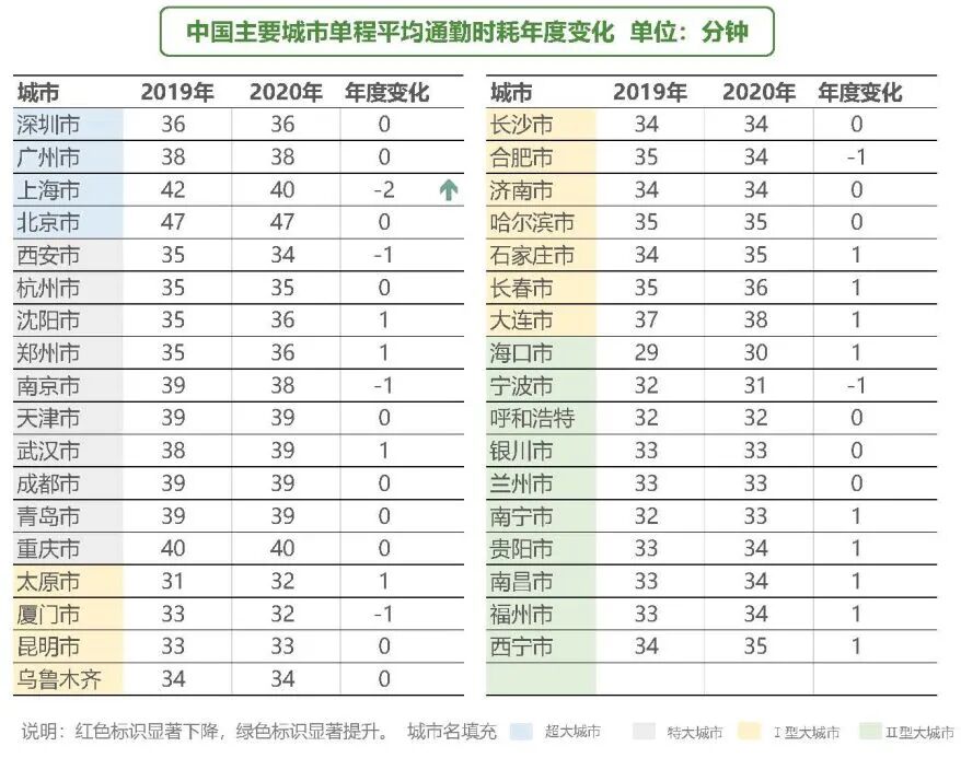 报告选取42个中国主要城市,汇聚2.3亿人的大数据职住和通勤样本,从通勤时间、通勤空间、通勤交通三个方面的10项指标,呈现2021年中国主要城市通勤画像。